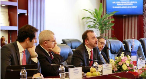 | Ông Jean-François Laval - Phó Chủ tịch điều hành khu vực châu Á của Airbus phát biểu tại buổi làm việc |