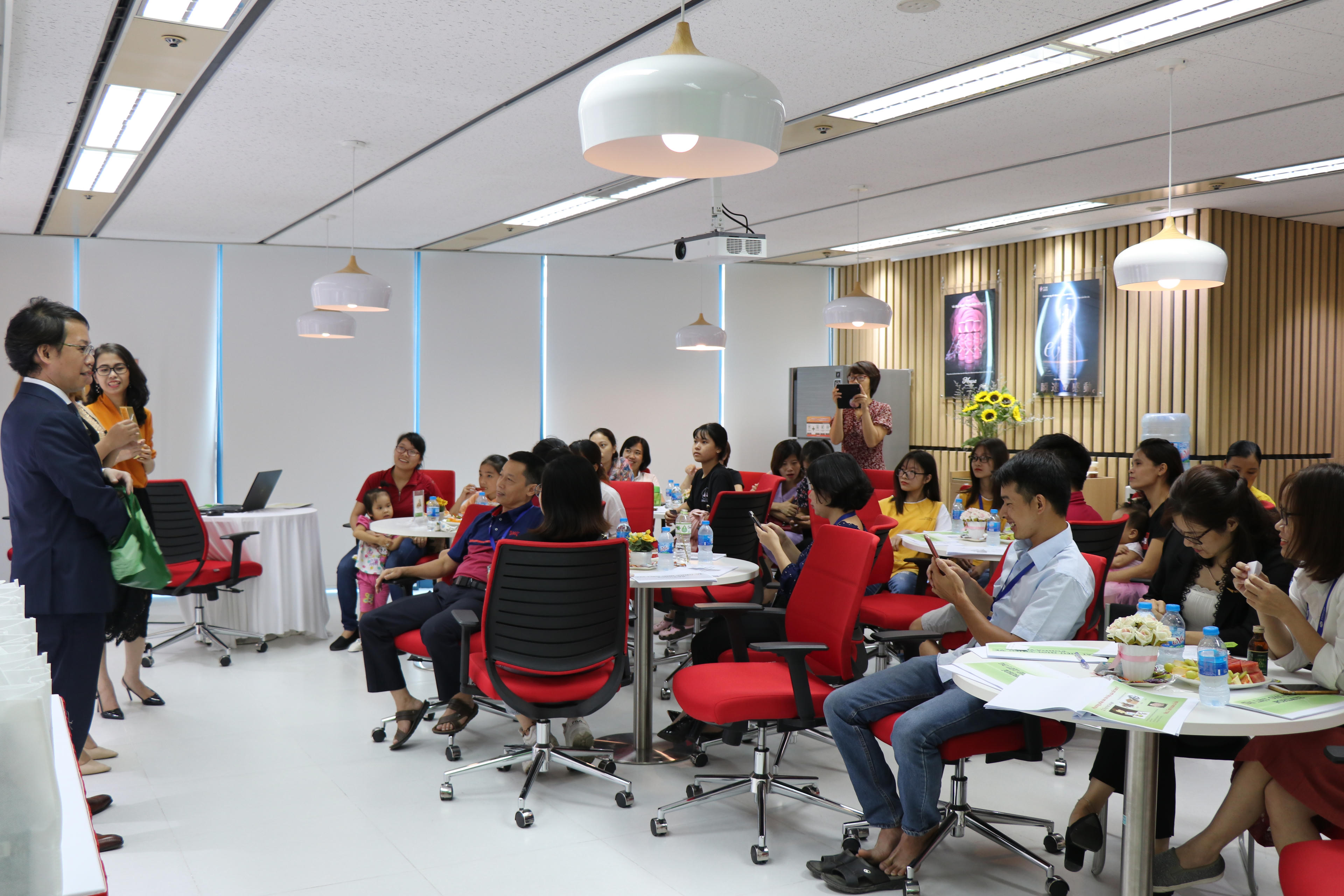 Đại diện Công ty Fordays Nhật Bản, ông Hirofumi Nakao - Tổng Giám đốc Fordays đã trực tiếp giới thiệu và trả lời các câu hỏi của cha mẹ liên quan đến việc sử dụng sản phẩm nước dinh dưỡng cho trẻ tổn thương não.