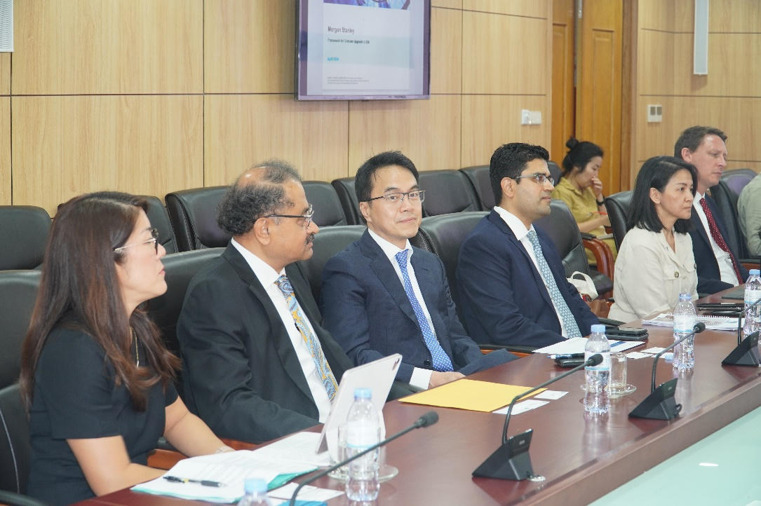 Về phía Morgan Stanley có bà Stella Jaeger - Đồng trưởng nhóm thị trường vốn Khu vực Đông Nam Á; ông Young Lee - Giám đốc điều hành khu vực châu Á về thị trường định chế; ông Kapil Trikha - Giám đốc điều hành khu vực Đông Nam Á; ông Pankaj Mataney - Trưởng bộ phận nền tảng kinh doanh và chiến lược chỉ số khu vực châu Á; ông Amitabh Chatterji - Trưởng bộ phận giao dịch hoán đổi Ấn Độ/ASEAN.