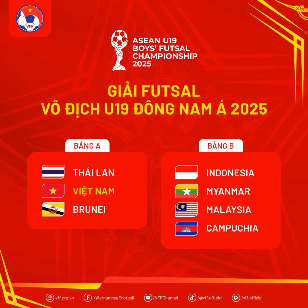 Trước đó vào chiều 28/10, tại Thái Lan, Liên đoàn Bóng đá Đông Nam Á (AFF) đã tiến hành lễ bốc thăm chia bảng và xếp lịch thi đấu cho Giải vô địch futsal U19 Đông Nam Á 2025 và Giải vô địch futsal U16 Đông Nam Á 2025.