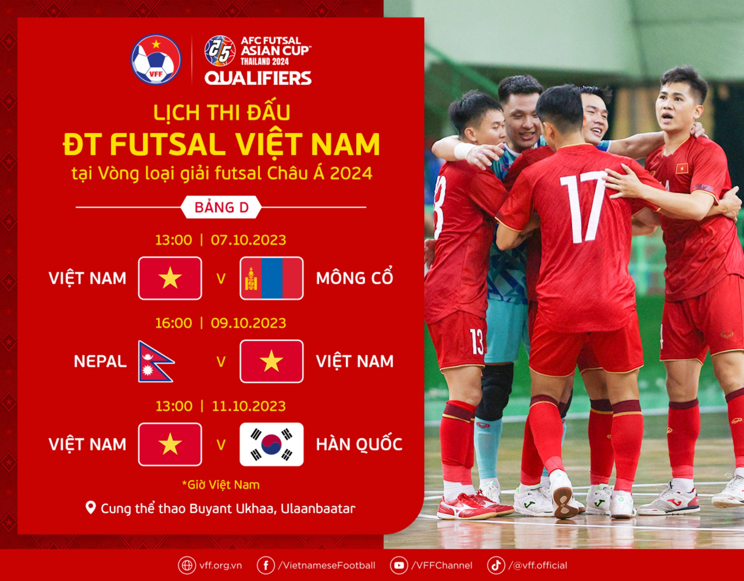 Theo lịch thi đấu, đội tuyển Việt Nam sẽ lần lượt gặp Mông Cổ vào ngày 7/10, gặp Nepal vào ngày 9/10 và gặp Hàn Quốc vào ngày 11/10. Trước thềm trận ra quân, HLV Diego Giustozzi Raul đã chốt lại danh sách chính thức của đội tuyển Việt Nam gồm 14 cầu thủ.