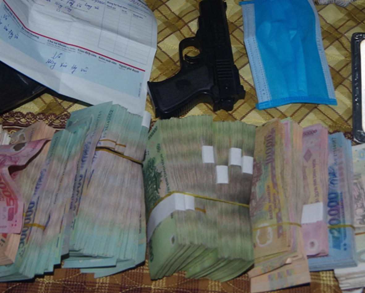 Cũng do mê game "tài xỉu" qua mạng nên đối tượng tiếp tục chơi và bị thua, phải “cắm” chiếc xe ô tô Kia K3 là tài sản vợ chồng tích góp mua được, lấy 270 triệu để trả nợ. Sợ bố mẹ, vợ con biết chuyện, đối tượng đi cướp ngân hàng lấy tiền trả nợ. Gần 700 triệu cướp được, đối tượng mang 290 triệu đi trả nợ, đưa thêm chủ nợ 20 triệu vì đang mượn xe máy (chính là chiếc xe sử dụng đi gây án)... Ngoài ra, đối tượng cũng đang nợ tiền một số người khác, mỗi nơi ước tính vài chục triệu đồng.