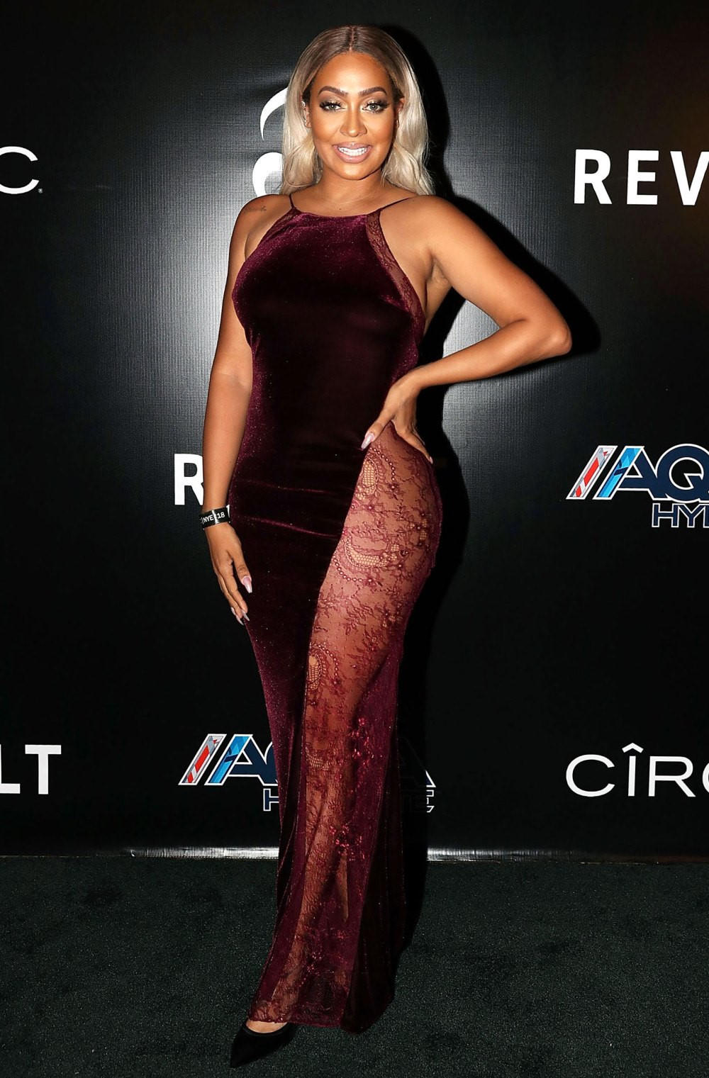 Lala Anthony trông hấp dẫn trong chiếc đầm yếm ren hở một bên đầy táo bạo. Đường cong và vòng ba đầy đặn của ngôi sao truyền hình được phô diễn trọn vẹn.