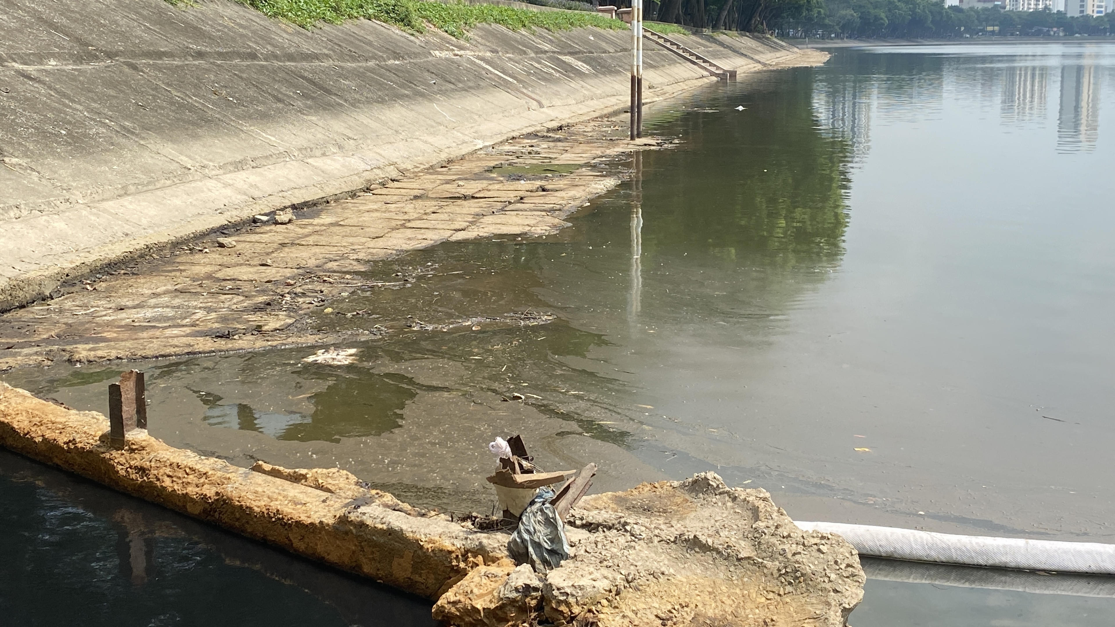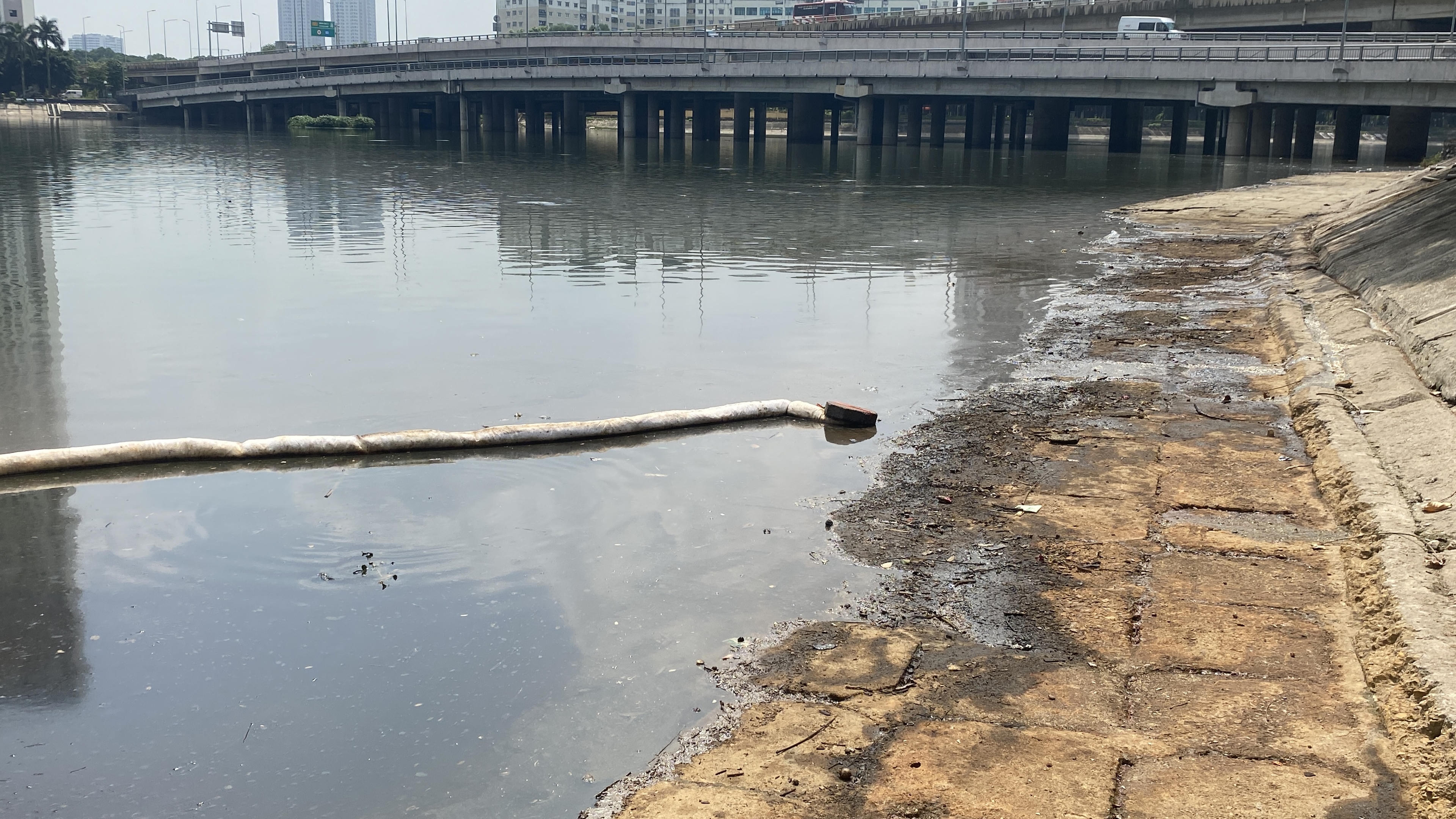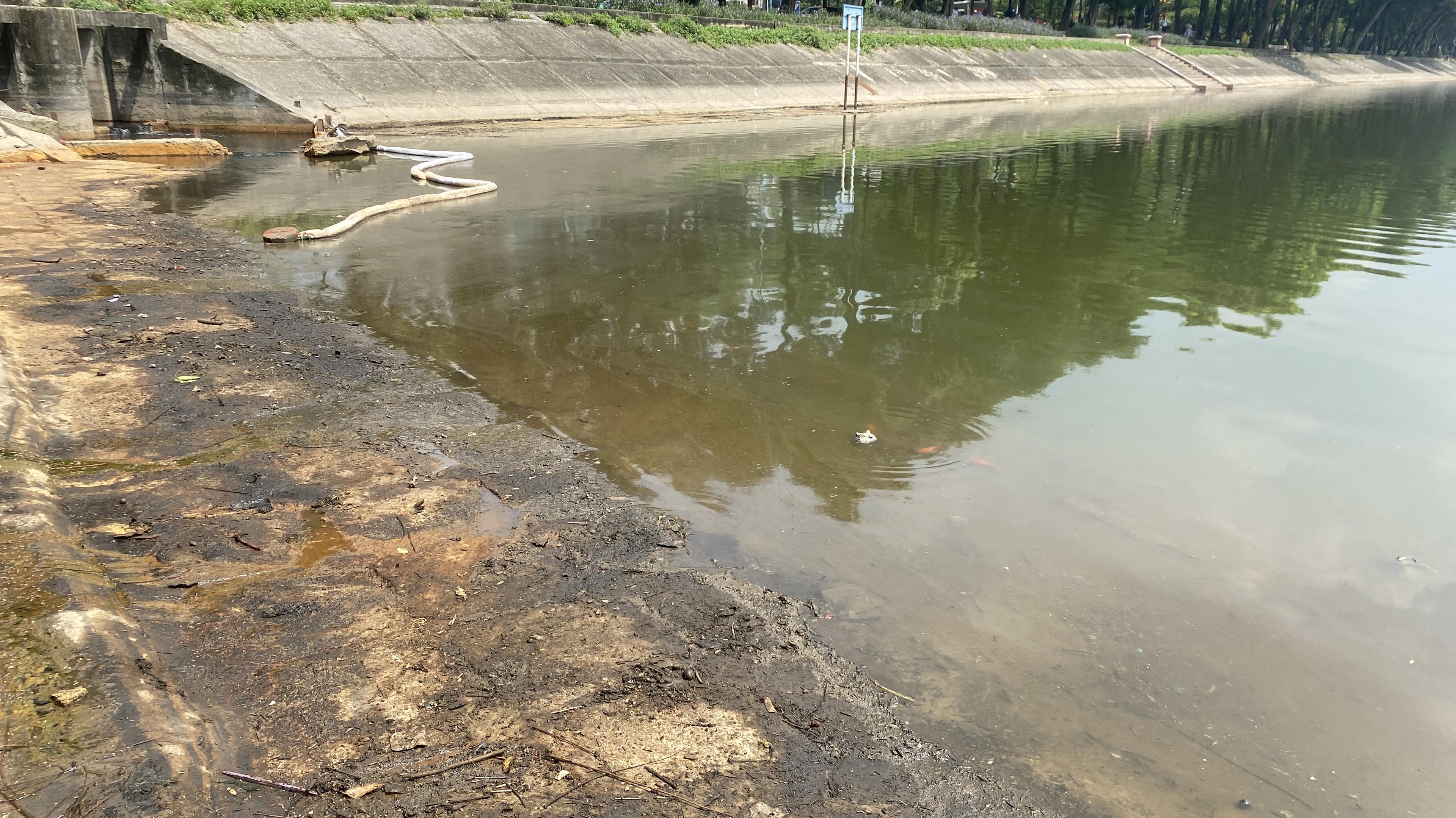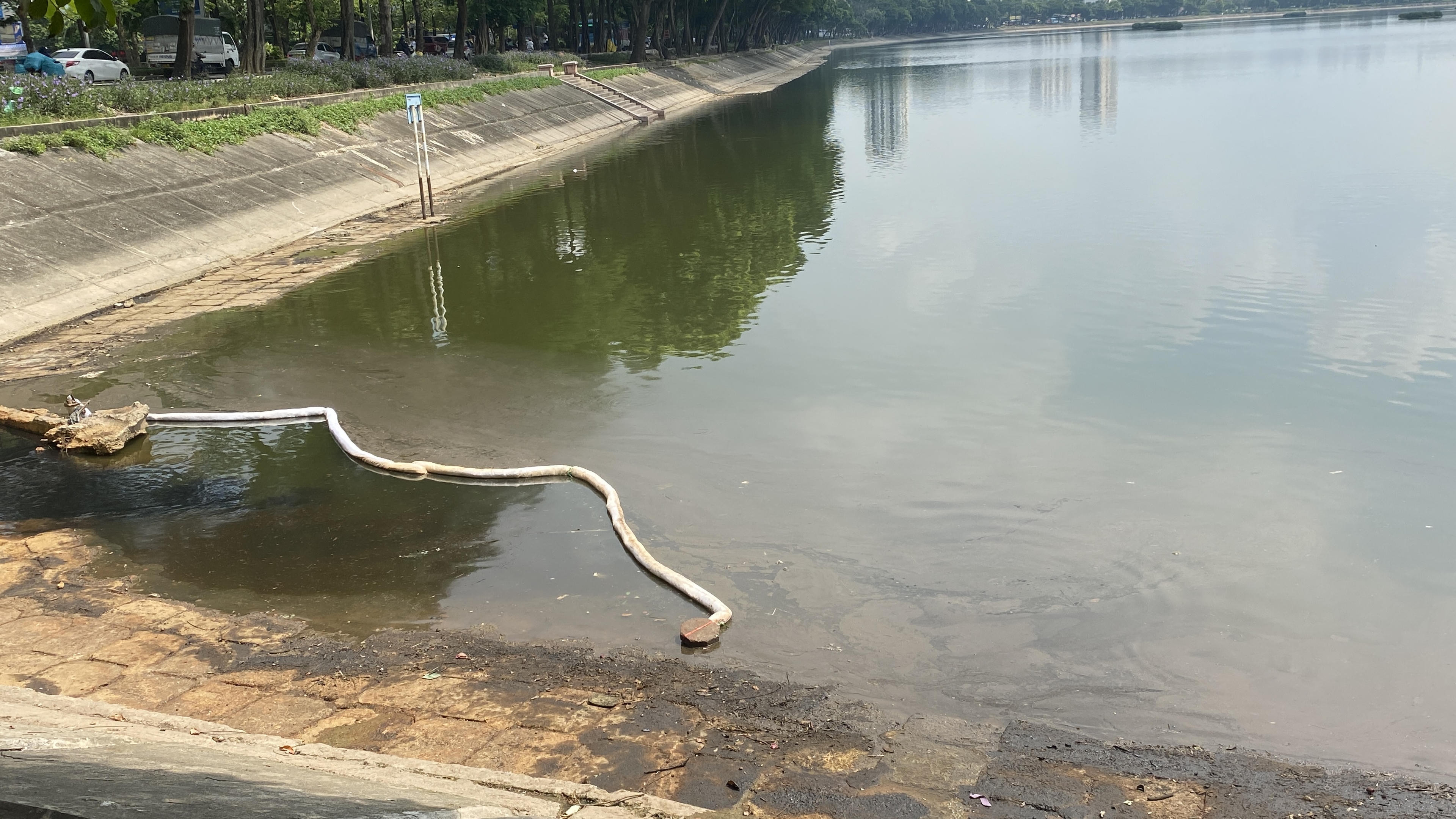 Gần 1 tuần vẫn chưa khắc phục xong sự cố dầu loang hồ Linh Đàm