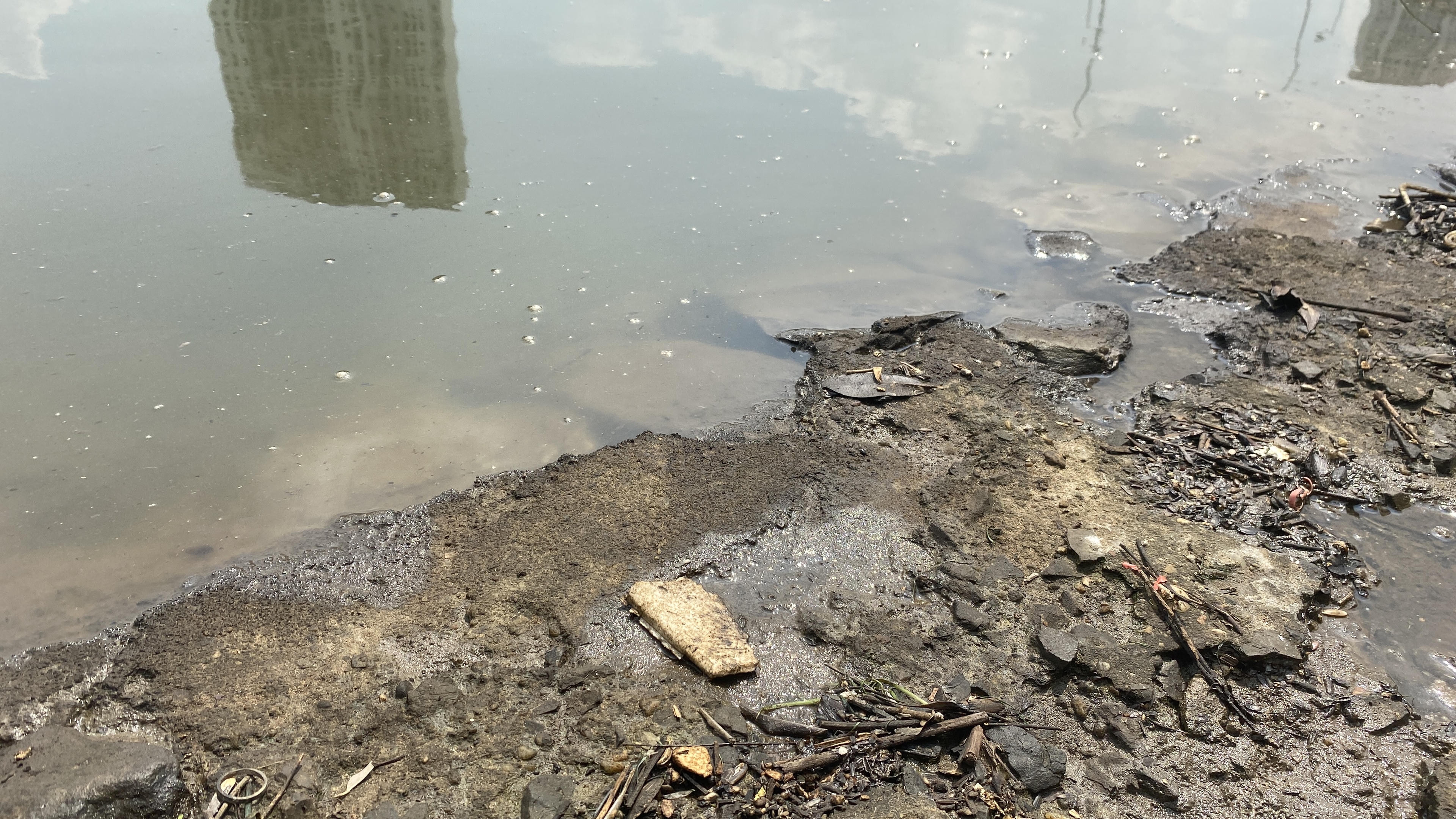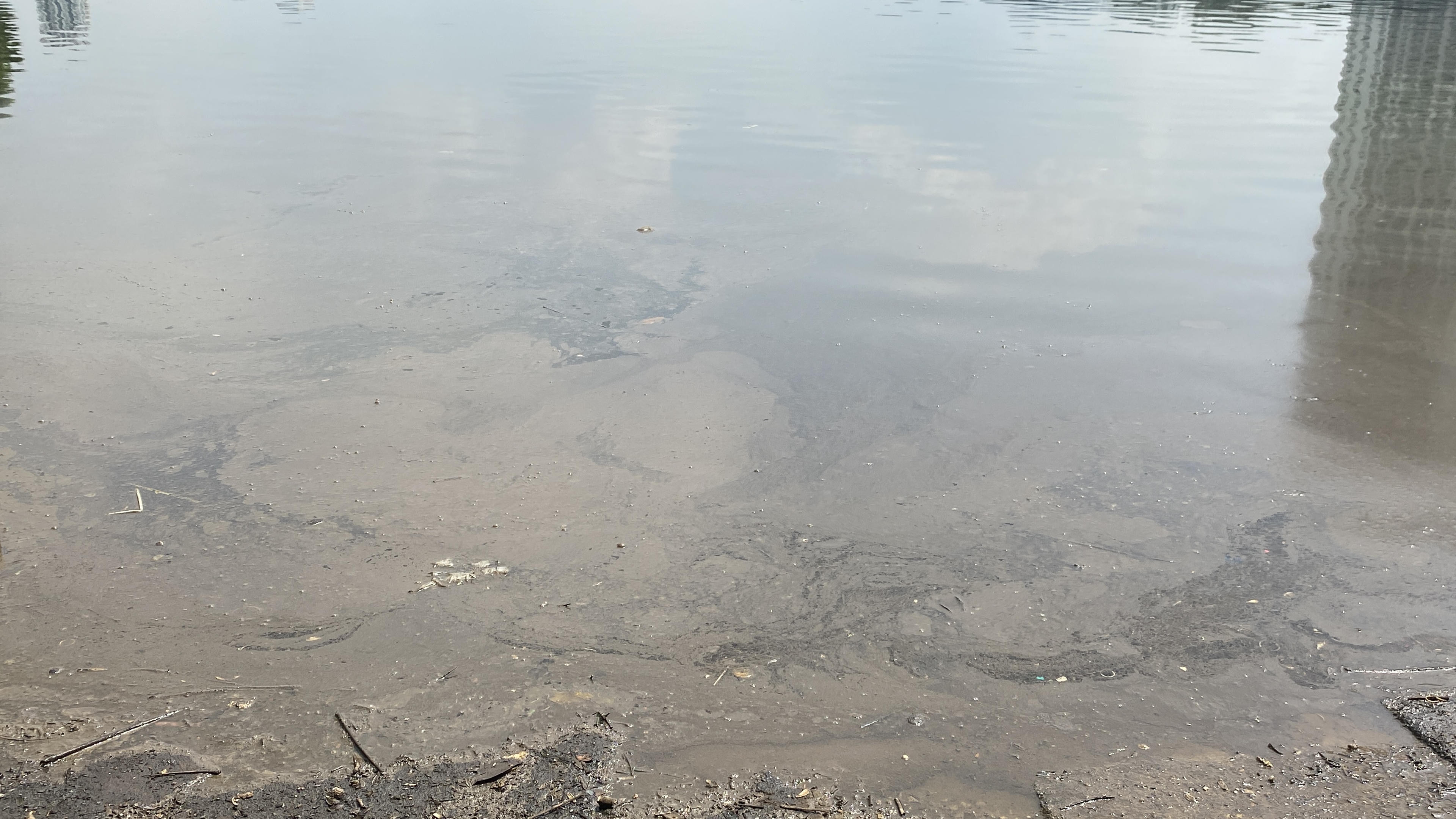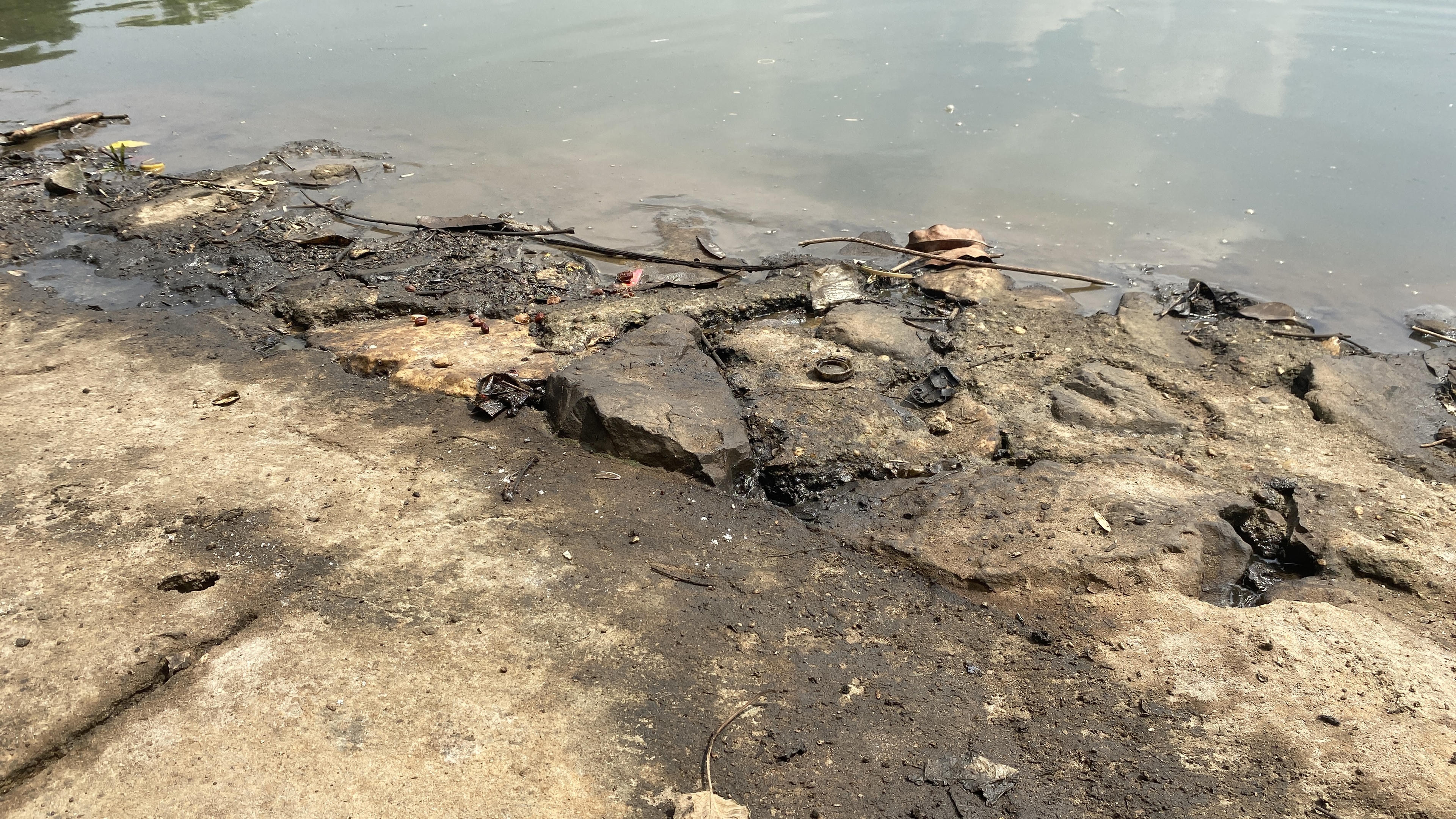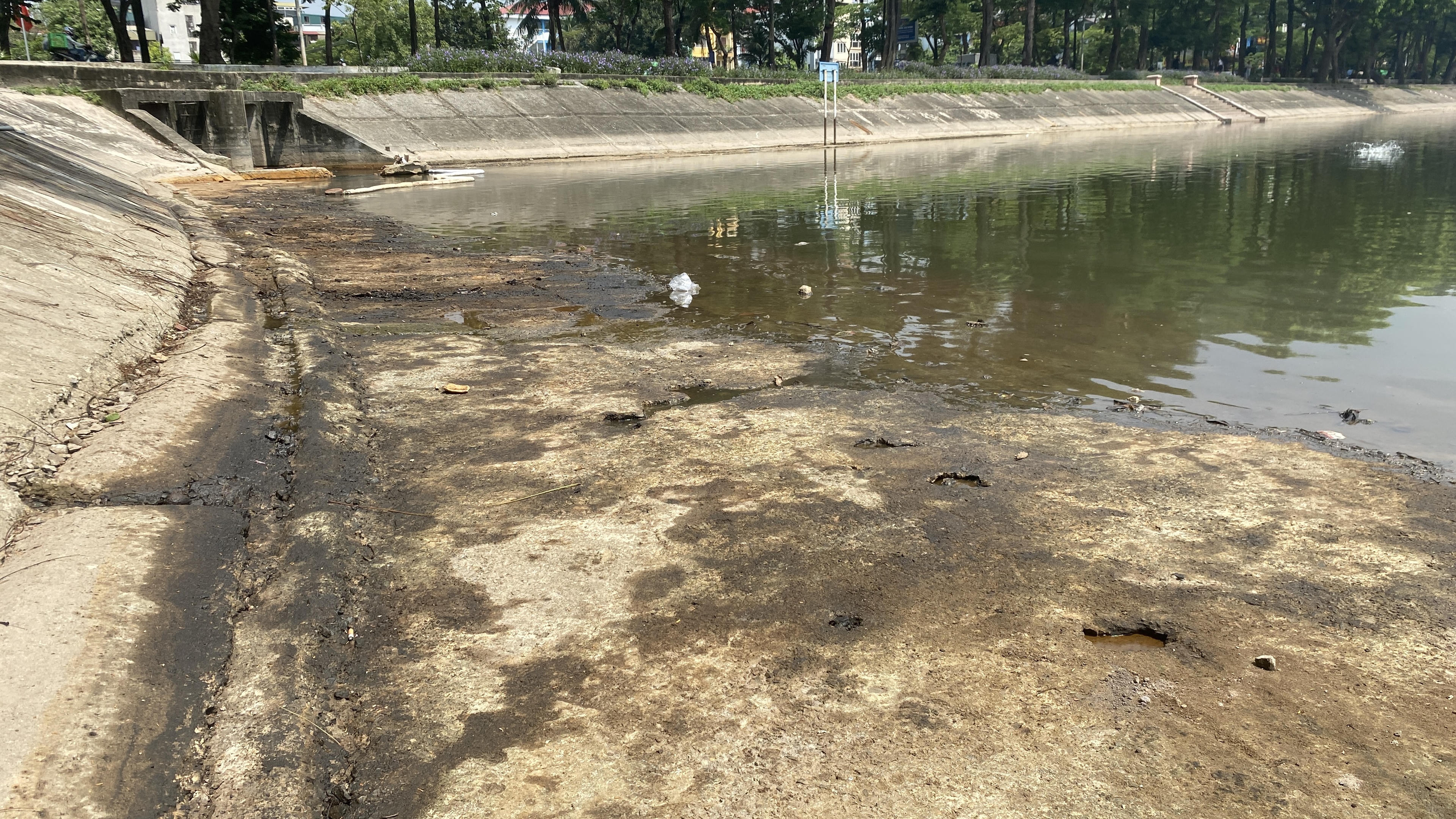 Theo lý giải của đại diện Xí nghiệp Quản lý duy trì hồ, hiện tượng dầu thải tiếp tục xuất hiện trên mặt hồ Linh Đàm là do cặn dầu vẫn còn tồn tại ở giữa hồ theo hướng gió dạt vào bờ gây ra hiện tượng dầu đóng váng cục bộ ven hồ.