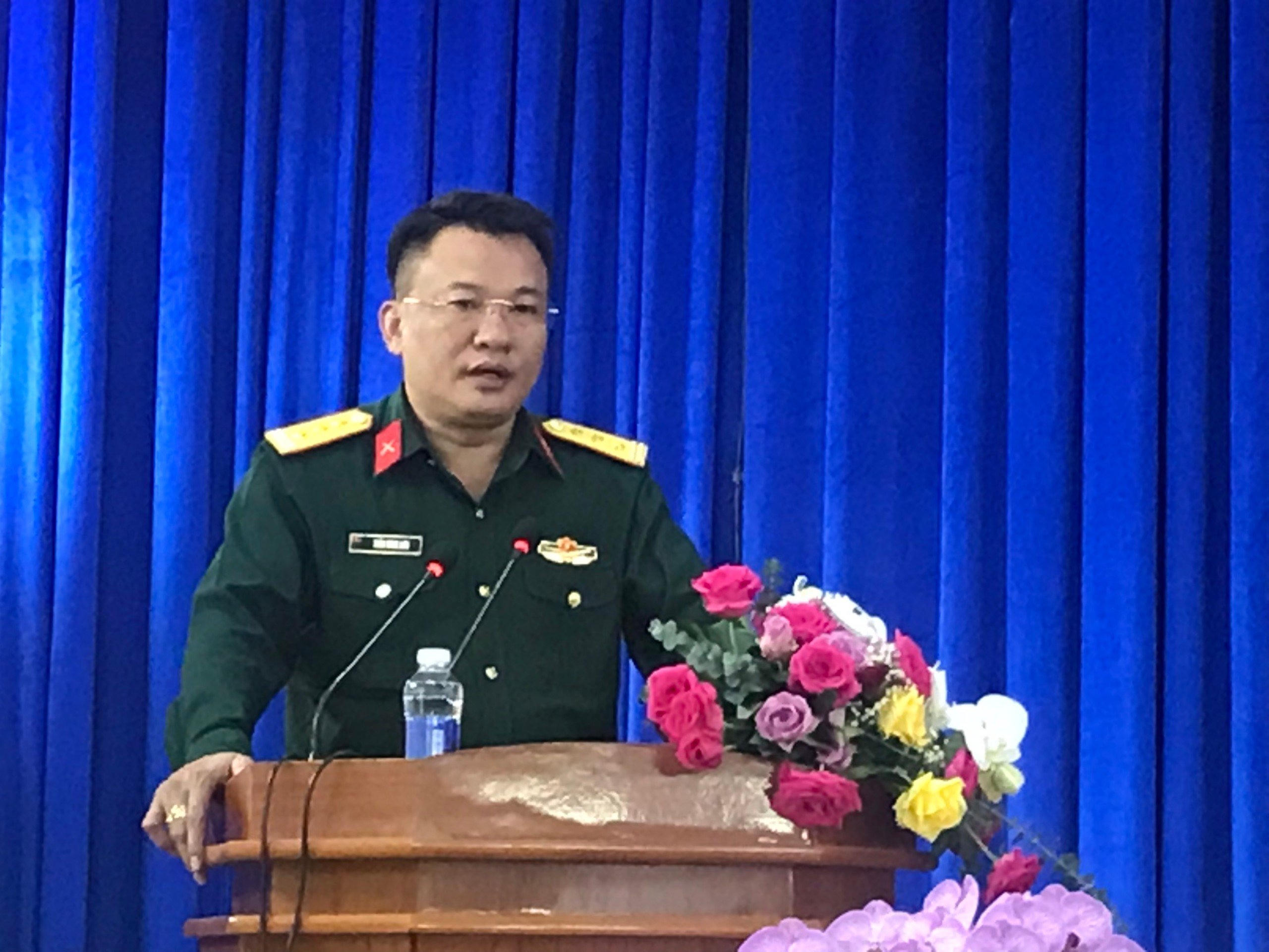 Thượng tá Trần Hùng Sơn - Chỉ huy trưởng Ban Chỉ huy Quân sự TP Đà Lạt, Phó Chủ tịch Thường trực Hội đồng Giáo dục Quốc phòng và An ninh TP Đà Lạt phát biểu khai mạc lớp bồi dưỡng. |