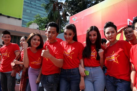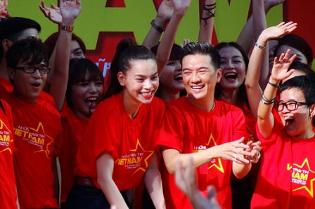Dưới cái nắng như đổ lửa của Sài Gòn những chiều cuối tháng 5, gần 100 nghệ sĩ cùng hơn 1.000 sinh viên vẫn xếp hàng ngay ngắn, khoác trên mình chiếc áo đỏ thắm màu cờ Tổ quốc để hòa giọng trong ca khúc Những trái tim Việt Nam. Nắng nóng nhưng không thể đội nón hay khoác áo, lại phải tập dợt, quay đi quay lại nhiều lần nhưng dường như ai ai cũng hừng hực một tinh thần hướng về quê hương, đất nước.