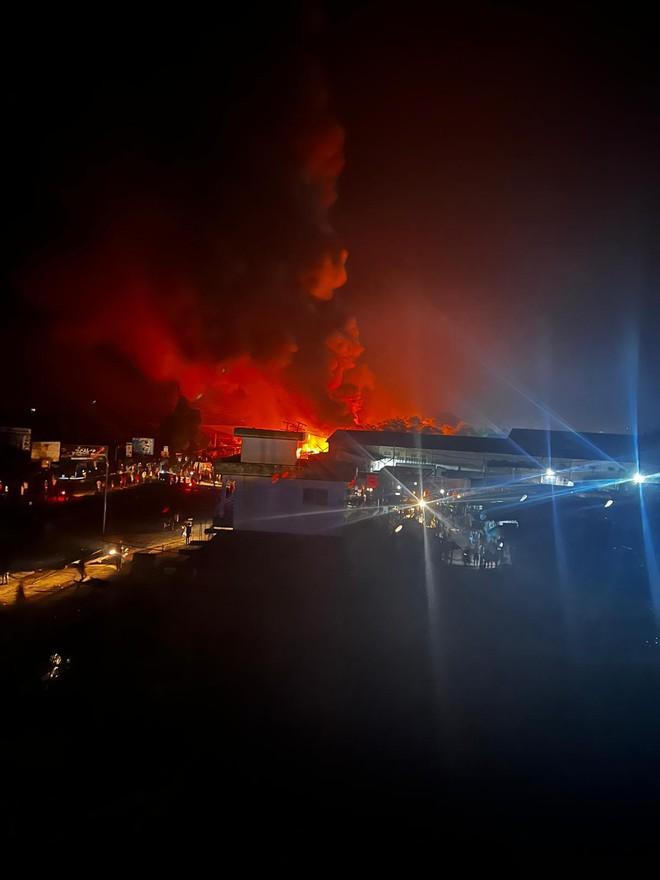 Ngọn lửa lớn bùng cháy lan cả ra các cửa hàng và ngôi nhà gần đó |