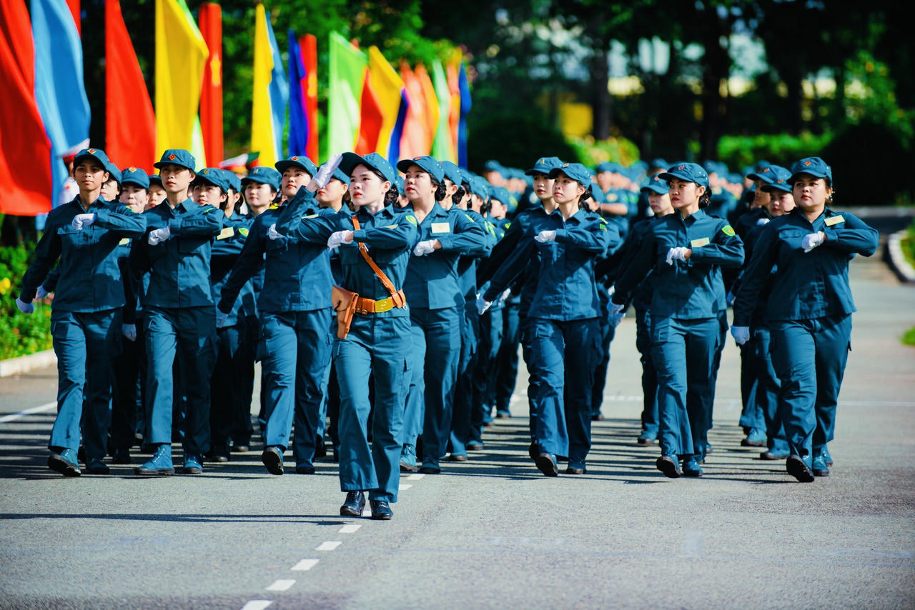 Khối sĩ quan, quân dân chuyên nghiệp diễu hành trong hội thao |