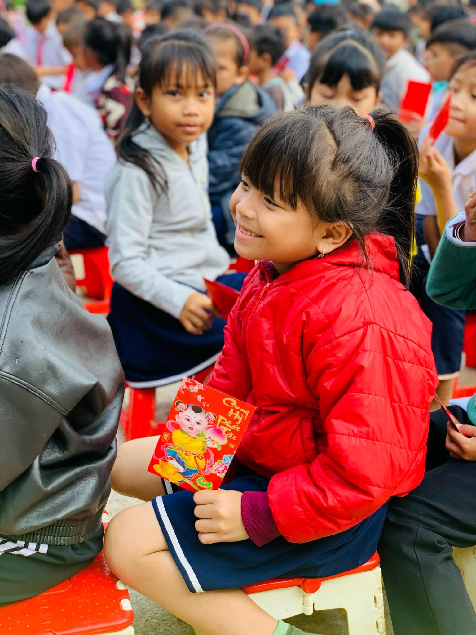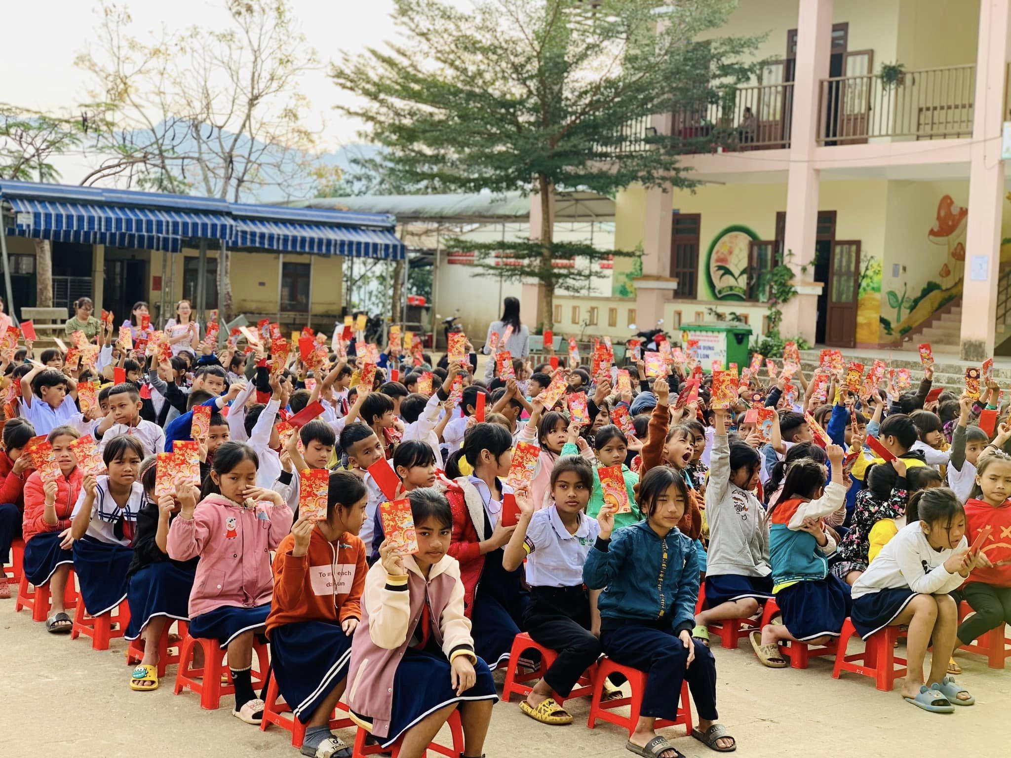 Tại buổi chào cờ đầu tuần, 19/2, hàng ngàn học sinh các trường mầm non, tiểu học, trung học cơ sở tại huyện Nam Trà My vui mừng phấn khởi khi nhận món quà lì xì đầu năm.