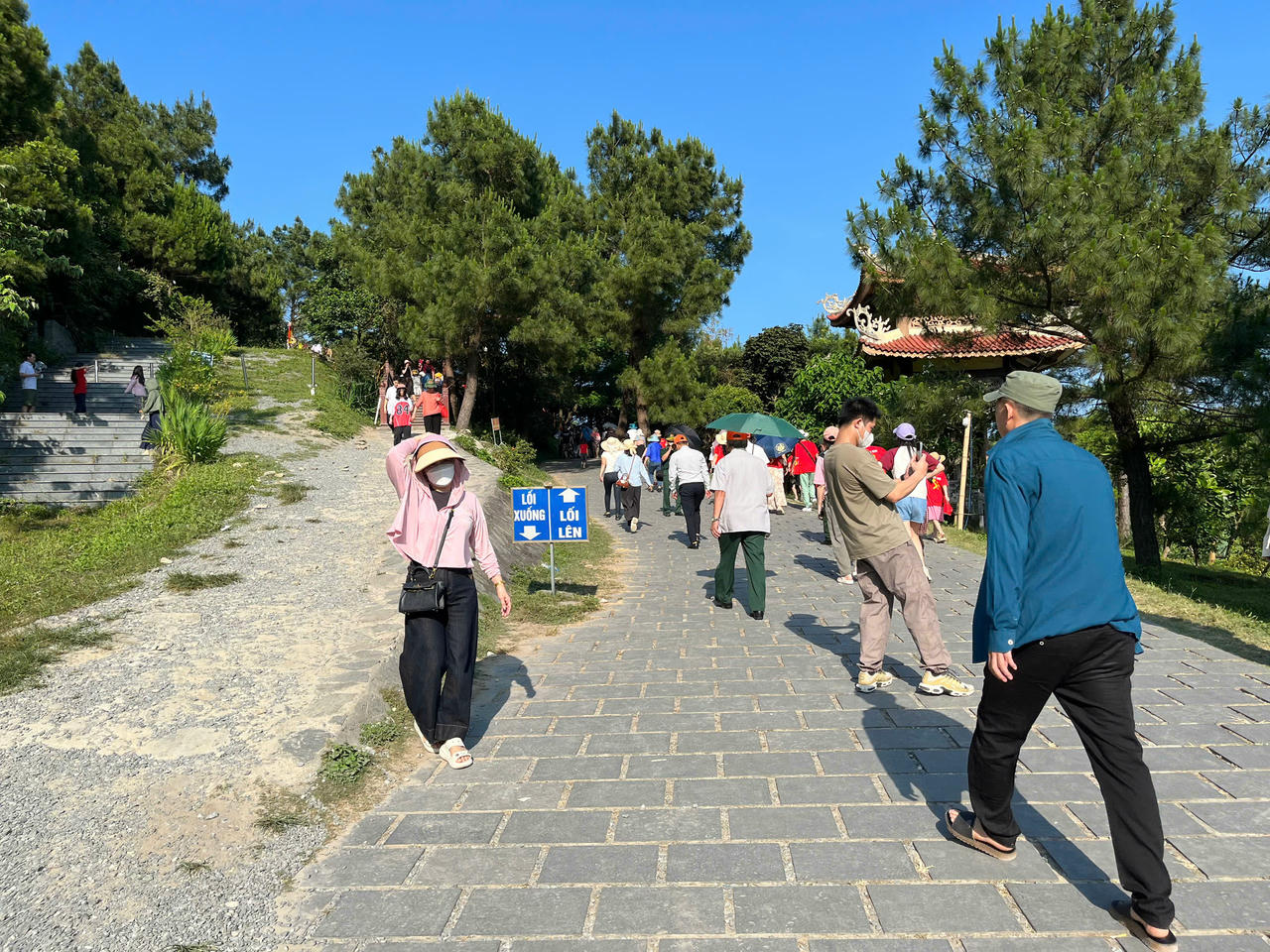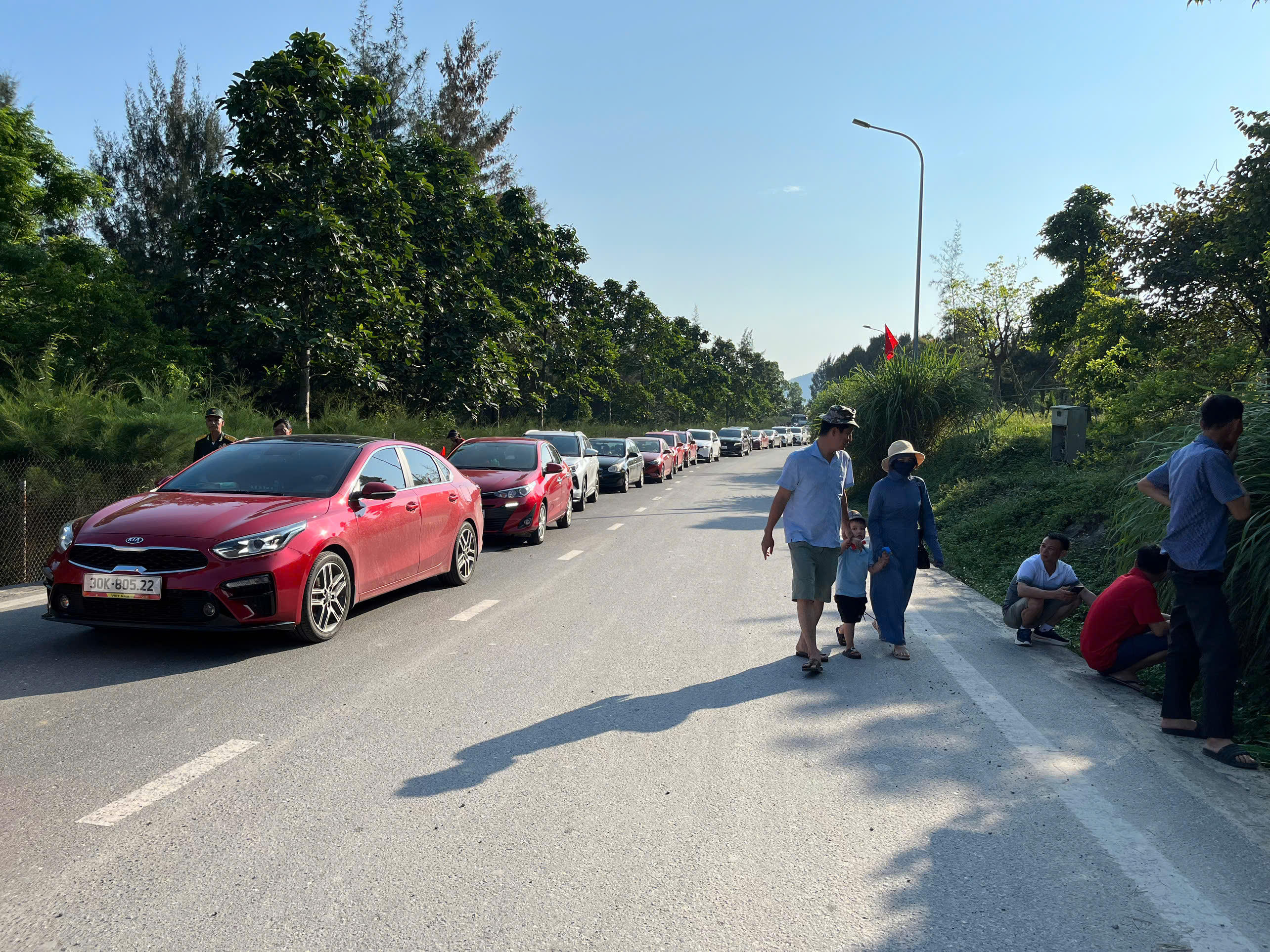 Xe xếp hàng dài trên đường vào khu mộ. |