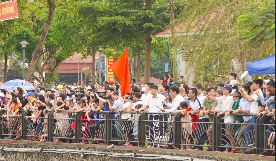 Ngay từ sáng sớm, bầu không khí ở khu vực xung quanh hồ Công viên Văn Lang đã rất sôi động, thu hút rất đông sự quan tâm của người dân địa phương và du khách. Bước vào cuộc thi đấu, hoà cùng chặng đua quyết liệt của các tay chèo trên sông nước, khán giả và du khách xung quanh hồ Công viên Văn Lang cũng cổ vũ cho các đội với tiếng trống, tiếng kèn vô cùng náo nhiệt.