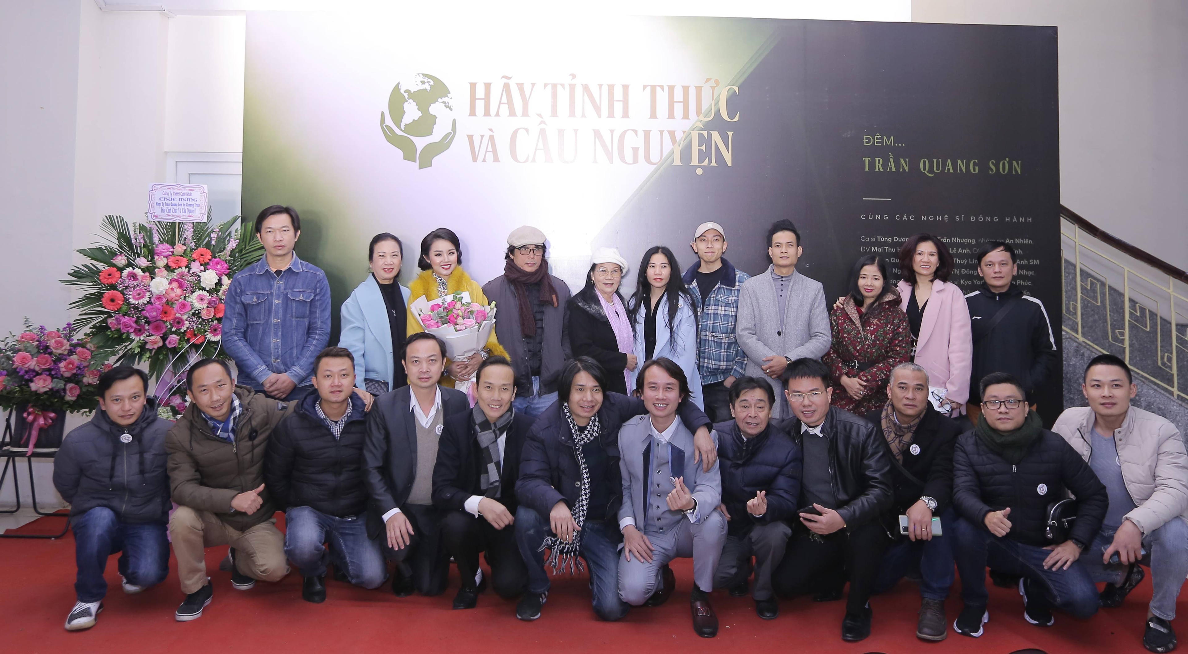 (PLVN) - Tối 10/1/2021, tại Nhà hát trường Cao đẳng Nghệ thuật Hà Nội đã diễn ra chương trình nghệ thuật công bố MV "Hãy tỉnh thức và cầu nguyện" của ca sĩ – nhạc sĩ Trần Quang Sơn với sự tham gia của gần 30 gương mặt nghệ sĩ tên tuổi như NSND Trần Nhượng, diễn viên Mai Thu Huyền, MC Bảo An, Sao Mai Hiền Anh...