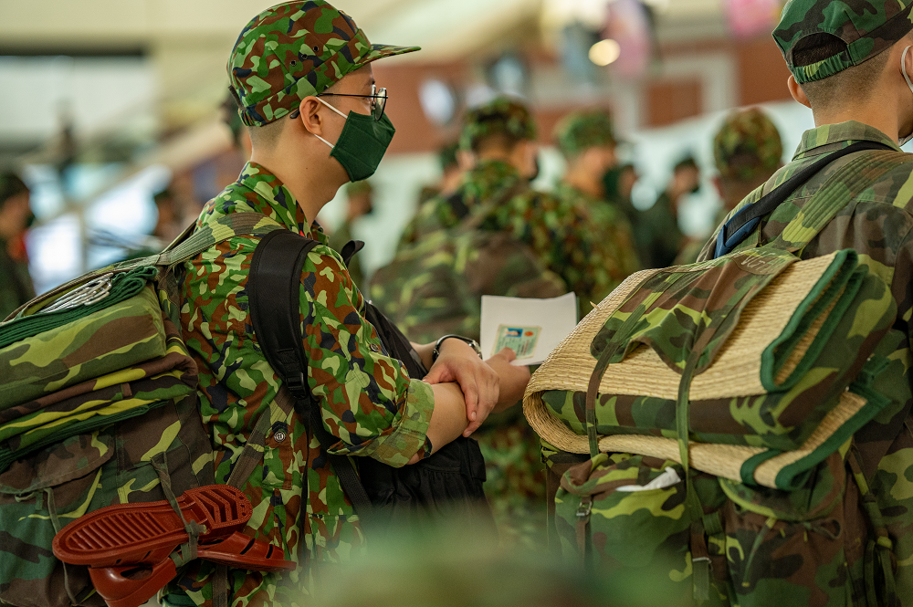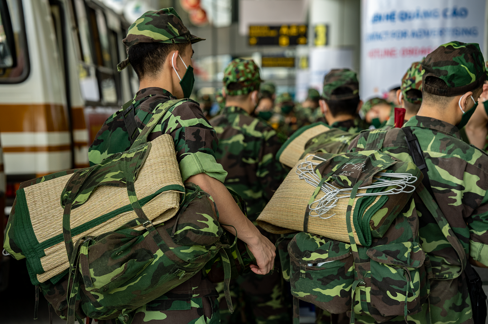 Trong ngày lên đường, các chiến sĩ đeo ba lô nặng trĩu, chủ yếu là các đồ dùng cá nhân.