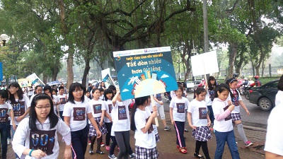 (PLO) - Sáng nay (26/3), tại Công viên Thống Nhất (Hà Nội), gần 3.500 học sinh đã tham gia chiến dịch “Thức tỉnh tình yêu trái đất”.