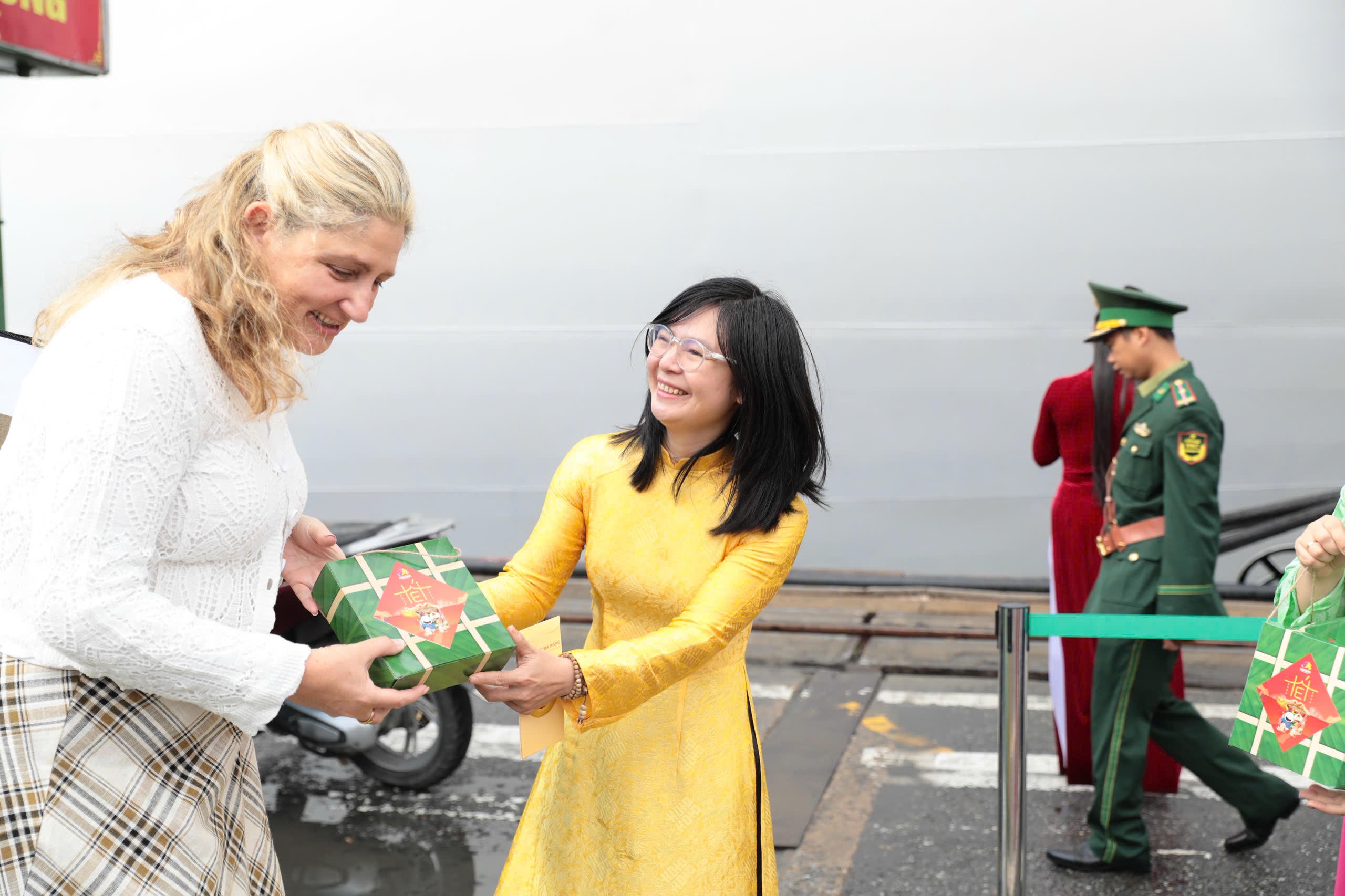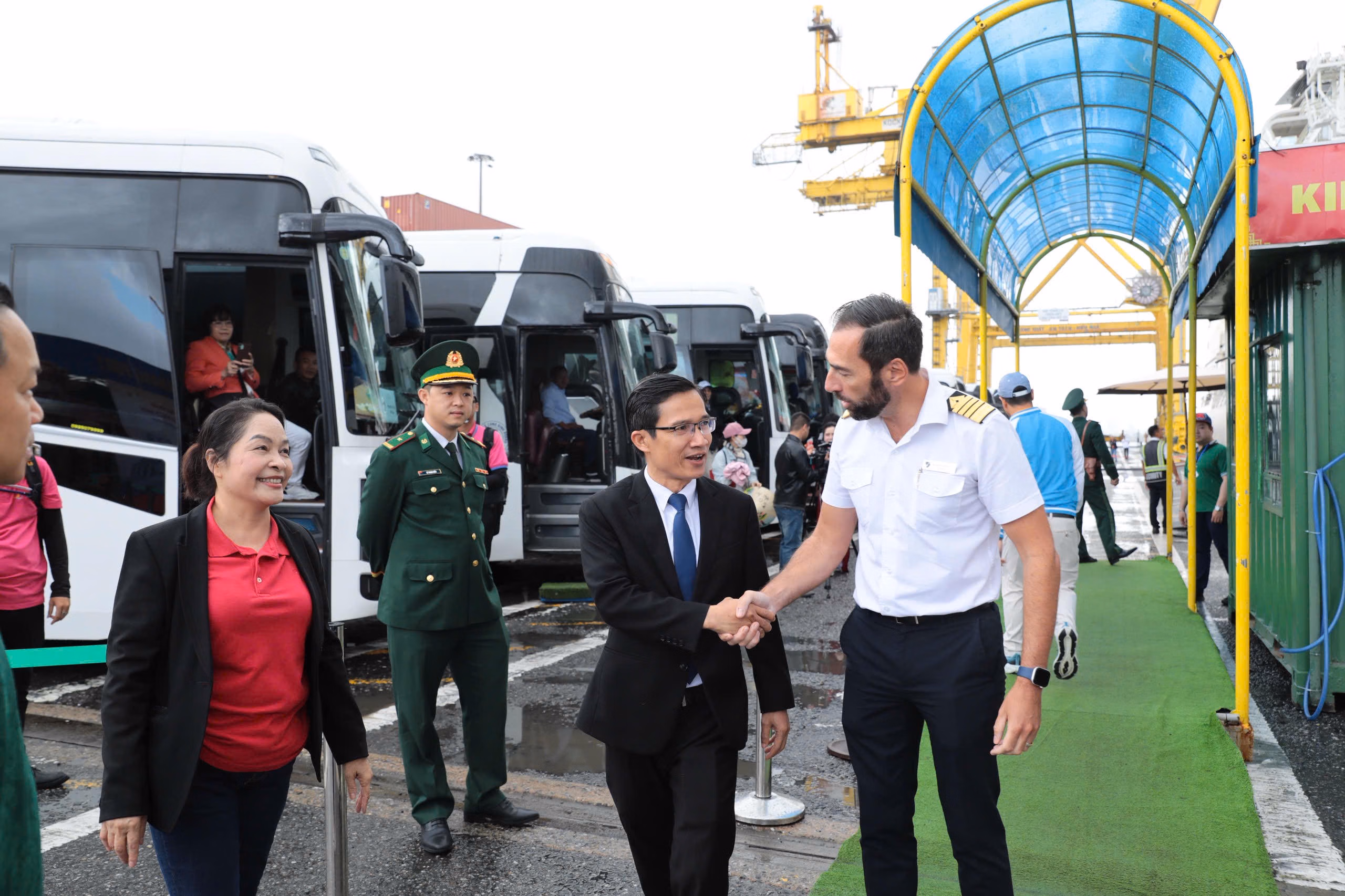 Ngay khi cập cảng, đoàn khách được chào đón bằng các hoạt động mang đậm bản sắc văn hóa Việt Nam như múa lân, tặng quà lưu niệm, nón lá và các món bánh truyền thống ngày Tết. Tàu rời cảng vào lúc 18 giờ cùng ngày sau khi du khách hoàn tất hành trình tham quan.