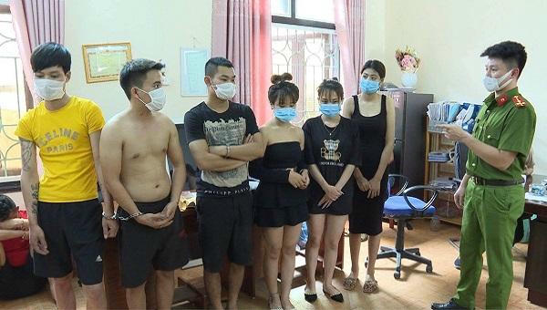 Nhóm đối tượng tổ chức "bay lắc" bị công an Phú Thọ phát hiện. |