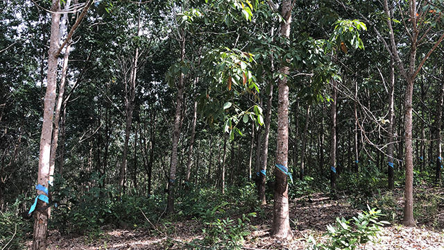 Theo quan sát của phóng viên, những lô cao su tại đây được chăm sóc kỹ lưỡng, cỏ được cắt tỉa gọn gàng, thân cây được xuất hiện những đường cạo sắc nét để lấy mủ. Nhưng khi có kết quả kiểm tra của Thanh tra tỉnh, phát hiện diện tích cao su trồng trái phép trên đất rừng thì không có đơn vị nào đứng ra nhận là chủ của diện tích cao su trên.