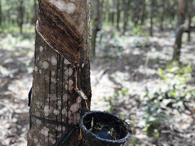 Cao su xanh tốt đang thu hoạch nhưng... vô chủ