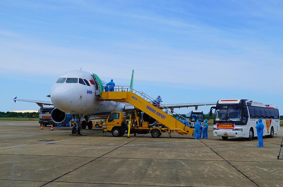 Sau khi máy bay hạ cánh xuống Cảng hàng không Đồng Hới, lực lượng chức năng tỉnh Quảng Bình đã đưa xe trung chuyển chở các công dân đến cách ly tập trung tại Trường Cao đẳng Luật Miền Trung, phường Bắc Lý, thành phố Đồng Hới. Thời gian cách ly 14 ngày tại khu cách ly tập trung và 14 ngày tại nhà. Tại khu cách ly tập trung, lực lượng quân đội đã huy động tổng lực làm vệ sinh, sắp xếp lại cơ sở vật chất theo đúng quy định.