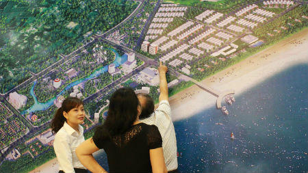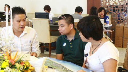 “Tôi mê chơi golf, nhưng cũng cảm thấy mình thật có lỗi khi dành quá ít thời gian cho gia đình. Vì vậy tôi cùng mấy anh bạn cùng nhau mua mấy biệt thự liền kề, tiện cho việc chơi golf và cũng có thời gian bên gia đình”, một khách hàng nam giải thích cho lý do đăng ký tới 5 căn biệt thự liền nhau cho nhóm 5 người.