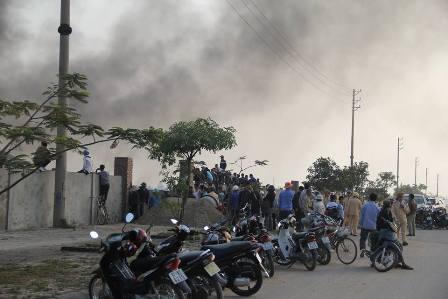 Gần 70 cảnh sát khống chế đám cháy tại khu công nghiệp