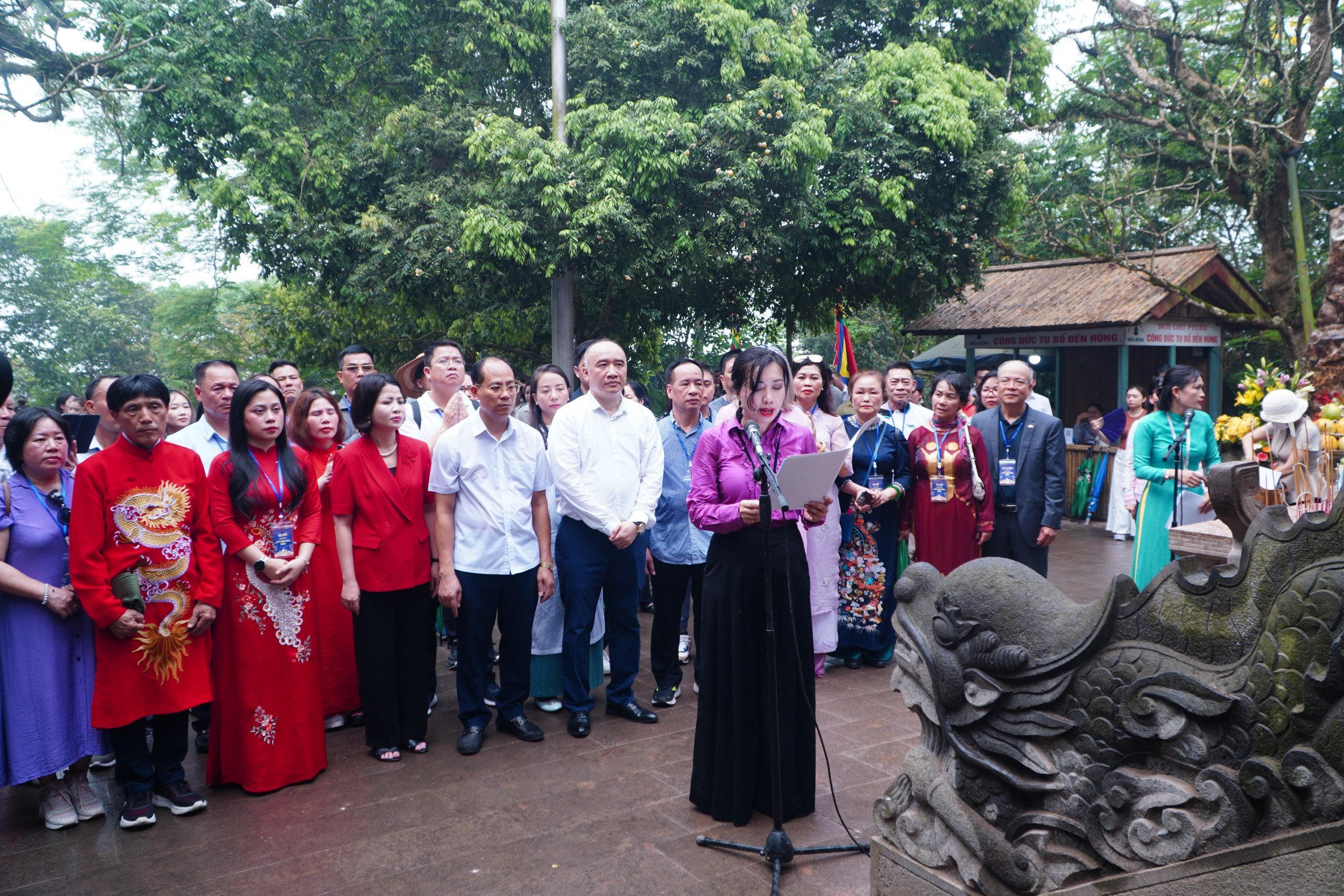Đoàn đã đến dâng hương tại Đền Quốc Tổ Lạc Long Quân, dâng hương tưởng nhớ tưởng nhớ các Vua Hùng tại Đền Hạ, Đền Trung và Đền Thượng.