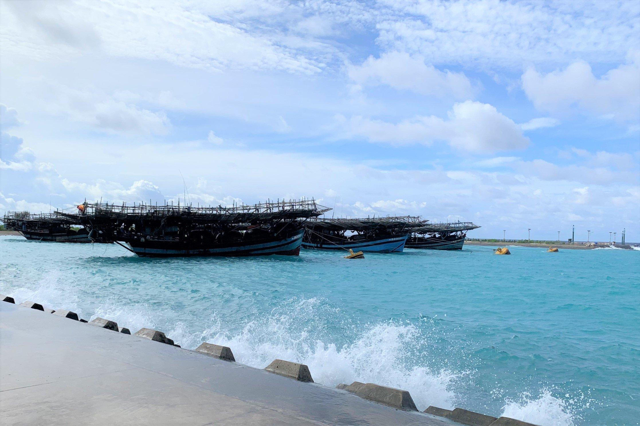 Tàu cá trú tránh áp thấp nhiệt đới tại Âu tàu đảo Sinh Tồn. Ảnh: Trung Kiên |