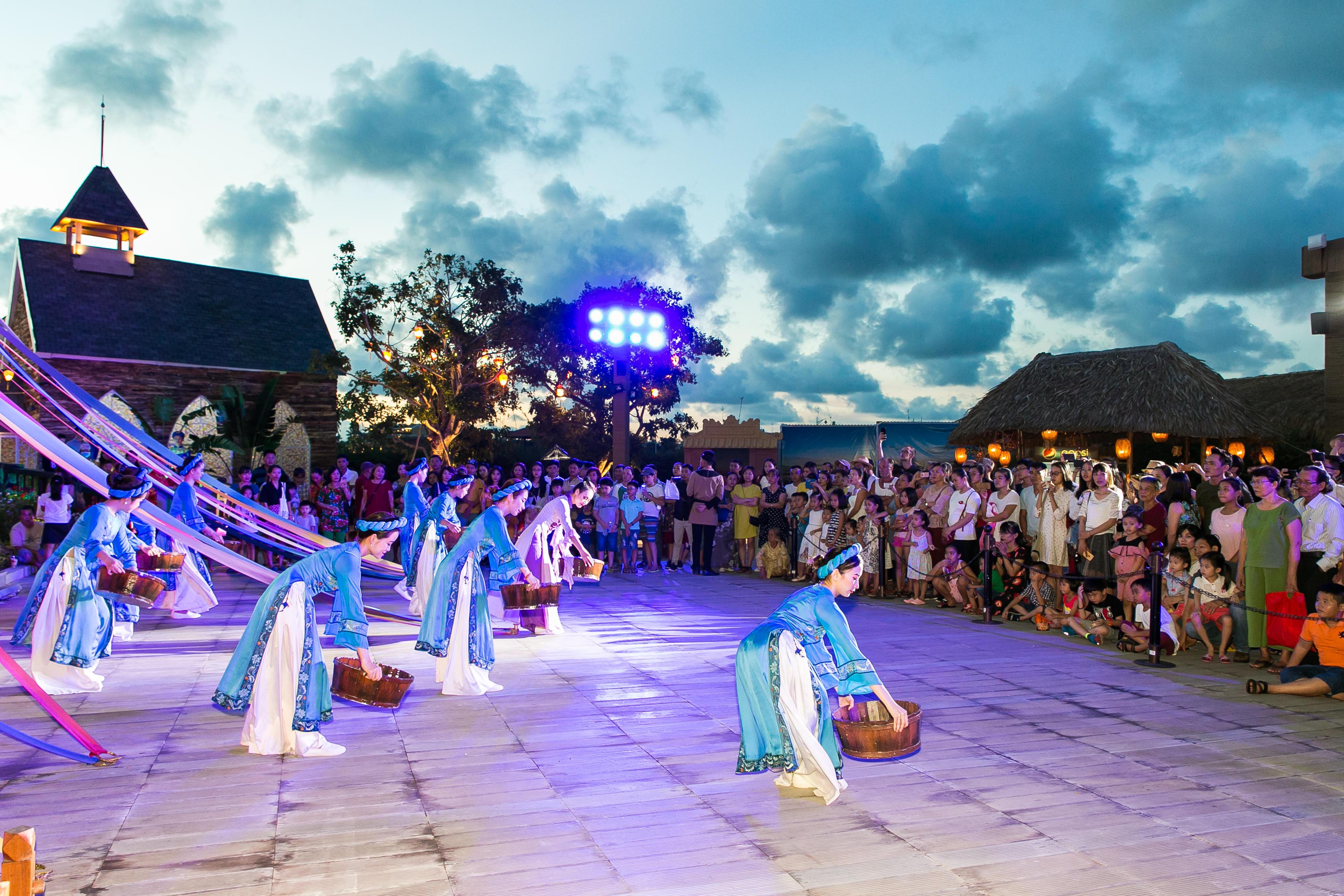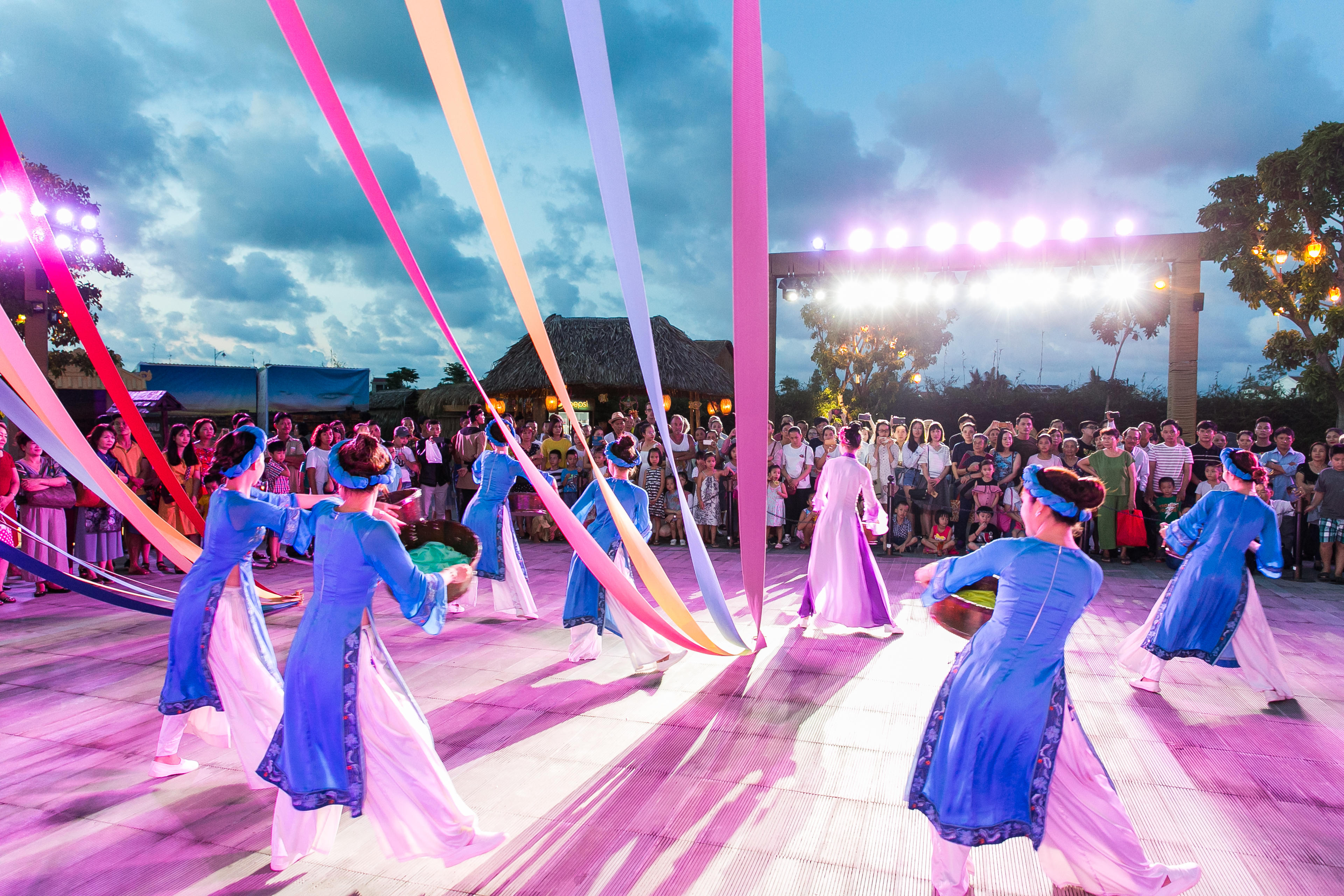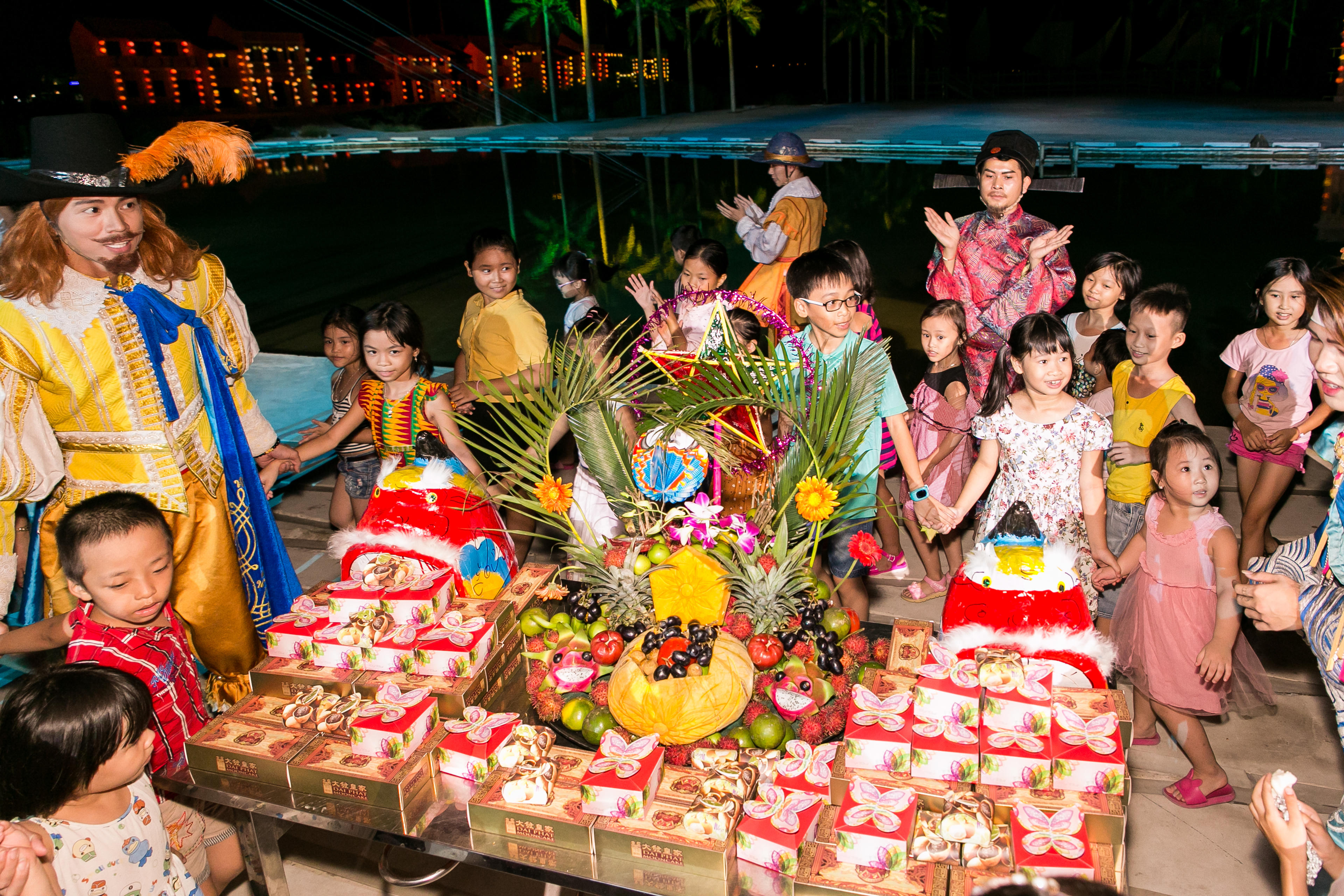 Tự tay các bé và du khách cũng được hướng dẫn để tạo ra những chiếc bánh và đèn trung thu đầy màu sắc với sự hướng dẫn của nghệ nhân Hội An và tham gia những hoạt động truyền thống: Làm to he, vẽ mặt nạ giấy bồi, làm châu chấu lá dứa; Gửi gắm ước nguyện vào những cánh hoa đăng trên dòng sông Hoài thơ mộng; Xuyên không 400 năm trở về một thị cảng Hội An để đắm chìm trong miền ký ức sống động và đầy tự hào của vùng đất di sản với các show diễn độc đáo, đầy thú vị mà chính du khách sẽ là diễn viên: Thế giới Hội An, Trại Hò đánh hổ, Khu rừng hạnh phúc, Đám cưới công chúa Ngọc Hoa… Sôi động cùng những bản hit cực “cute” của bé Thanh Ngân - The Voice Kid.