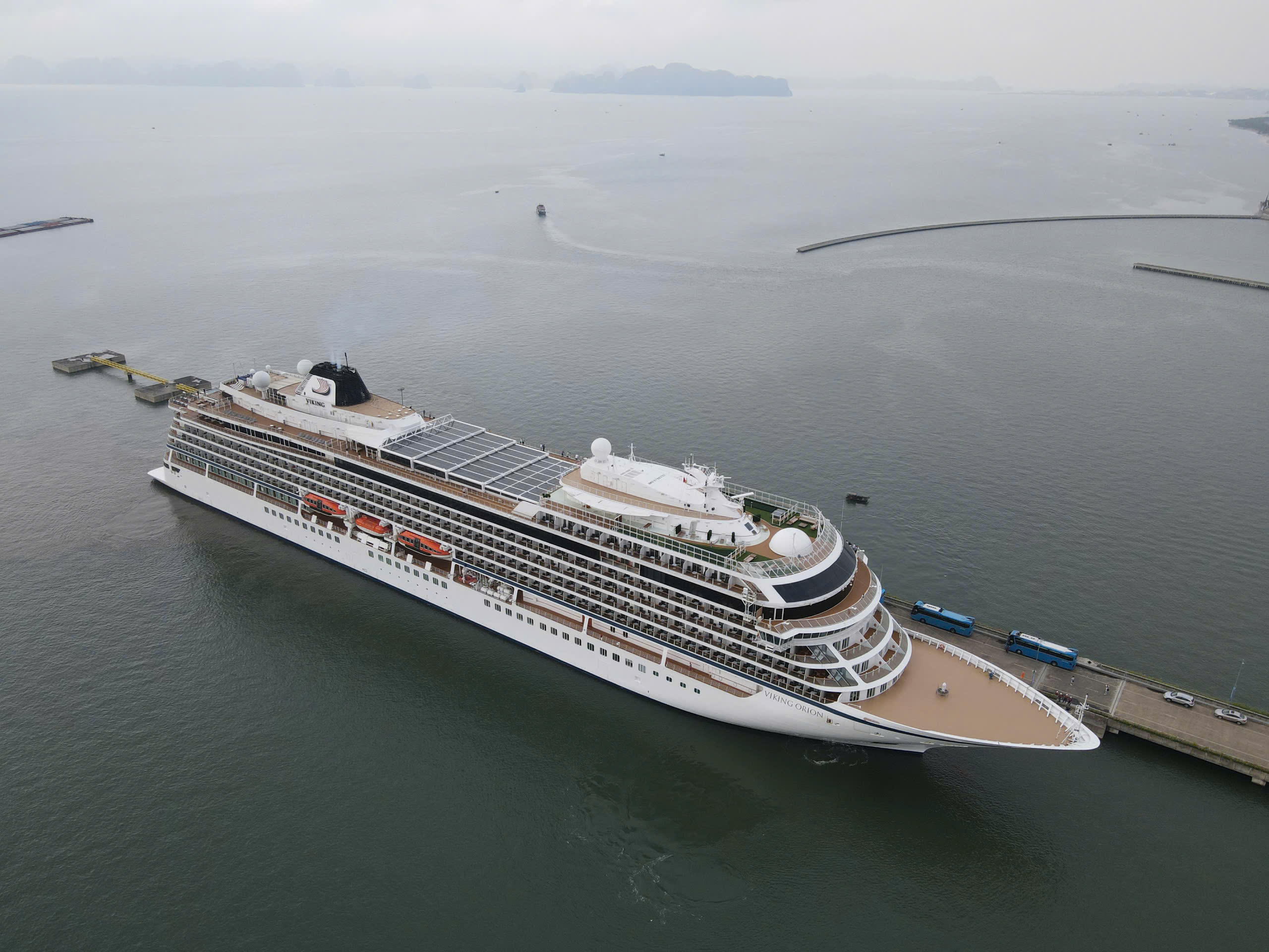 Tàu Viking Orion mang theo gần 900 du khách đã cập Cảng tàu khách quốc tế Hạ Long . |
