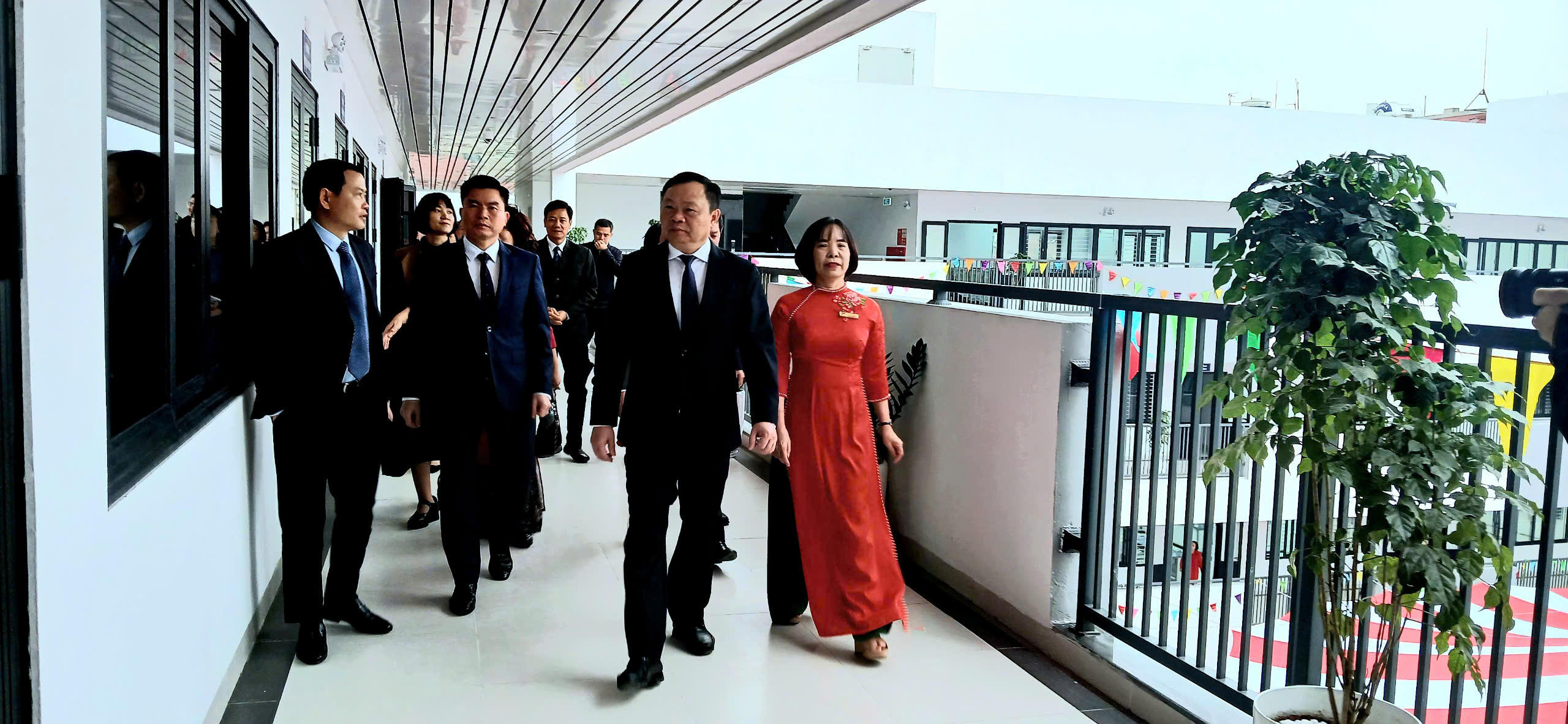 Các đại biểu tham quan cơ ngơi mới của trường. Ảnh: Thanh Thanh |