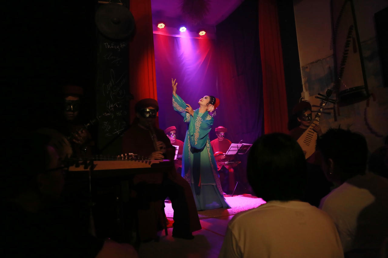 Người đến xem vở diễn có thể chọn chỗ ngồi trên sofa, ghế tựa hoặc ngồi bệt xuống chiếu ở dưới sàn. Trong suốt thời gian diễn ra vở diễn, không ai bảo ai, mọi người chủ động tắt chuông điện thoại, không livestream, không chụp ảnh và chỉ tập trung hướng mắt nhìn về phía bục sân khấu - nơi vỏn vẹn 4m² mà người nghệ sĩ đang ca, đang hát, đang khóc, đang cười cùng nhân vật của mình.