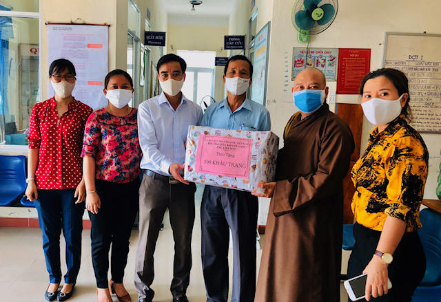 Tiếp đó, Ban Trị sự Giáo hội Phật giáo quận Liên Chiểu và chùa Nam Hải phường Hoà Hiệp Bắc ủng hộ 2.000 khẩu trang y tế, 4 máy đo thân nhiệt và 1 triệu đồng cho Ban Chỉ đạo phòng, chống Covid-19 các phường và các chốt trực trên địa bàn quận.