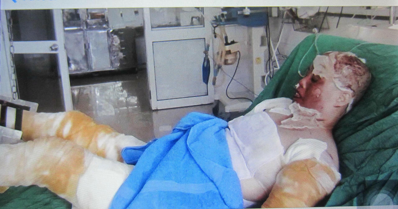 “Tôi định mở cửa lần hai thì bị lửa trùm lên người. Thấy vậy, chồng tôi vội lao vào dập lửa cũng bị bén lửa. Hai vợ chồng tôi điên cuồng lăn bò trong nhà một lát mới được mọi người phá cửa sổ để chui ra”, chị Dương đau đớn nhớ lại.