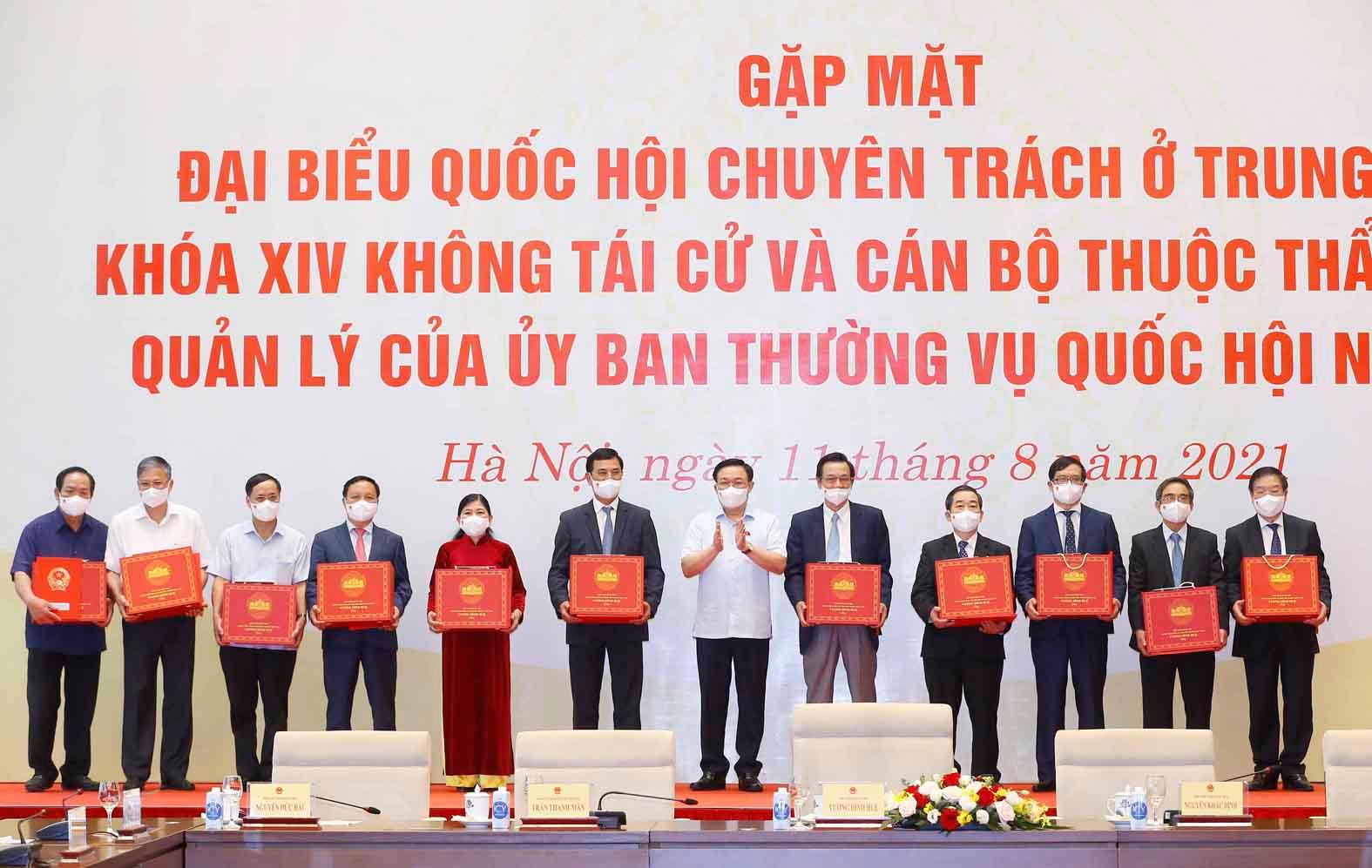 Phát biểu tại buổi gặp mặt, Chủ tịch QH Vương Đình Huệ bày tỏ ghi nhận, đánh giá cao những đóng góp của các đại biểu chuyên trách nghỉ chế độ hoặc không tái cử ở Trung ương. Sự đóng góp ấy được thể hiện qua những thành tựu hết sức tốt đẹp của nhiệm kỳ QH khóa XIV trên các phương diện lập pháp, giám sát tối cao, quyết định những vấn đề quan trọng của đất nước, để lại những kinh nghiệm quý, bài học hay để QH khóa XV tiếp tục phát huy.