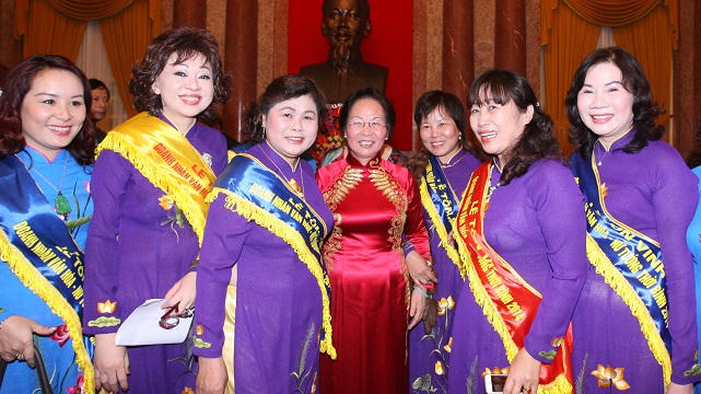 | Doanh nhân Nguyễn Thị Thanh (ngoài cùng bên phải) chụp ảnh kỷ niệm cùng Phó Chủ tịch nước Nguyễn Thị Doan trong lễ tôn vinh "Doanh nhân văn hóa - nữ tướng thời bình 2014" |