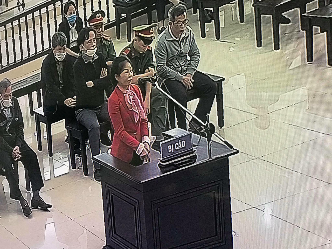 Đến lượt mình, bị cáo Nguyễn Thị Thanh Sơn vừa cười vừa trả lời câu hỏi của HĐXX. “Bị cáo có ý kiến gì về tội danh “Lạm dụng tín nhiệm chiếm đoạt tài sản” mà VKS truy tố?”. Bị cáo Sơn cười nói bản thân thiếu hiểu biết nên đã sơ suất, đồng ý giúp chồng. “Mong HĐXX chiếu cố, khoan hồng cho bị cáo”, bị cáo Sơn vừa cười vừa nói.