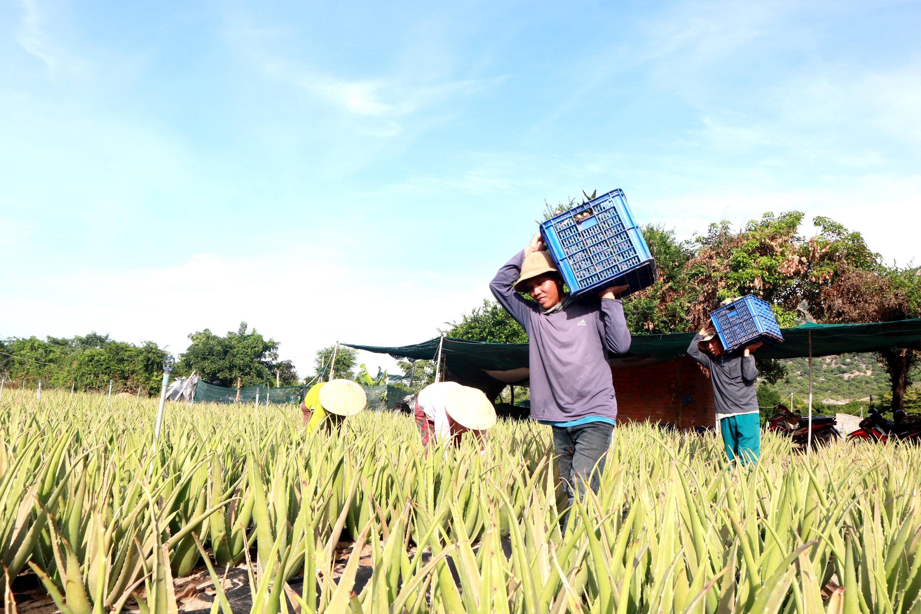 Hơn 10 năm trồng nha đam tại phường Văn Hải, TP Phan Rang - Tháp Chàm, bà Trương Thị Phượng cho biết, chưa lần nào bà phải nhờ “giải cứu” nha đam vì luôn có doanh nghiệp bao tiêu. Theo thoả thuận hợp tác, công ty Cổ phần Thực phẩm Cánh Đồng Việt - Vietfarm (thuộc GC Food Group) cung cấp nguồn giống chất lượng cao, hướng dẫn cách trồng, chăm sóc theo tiêu chuẩn và bao tiêu đầu ra, gia đình bà Phượng tôn trọng thỏa thuận, đảm bảo cung cấp đủ sản lượng như đã ký kết. Bà Phượng cho biết thêm: “Một tháng thì mình cắt một lần, giá cả của nha đam bình ổn, thị trường lên thì công ty tính lên cho mình. Từ ngày liên kết với công ty thì đời sống bà con ổn định, nếu với các loại cây trồng khác ở đây thì đầu ra không còn bấp bênh…”.