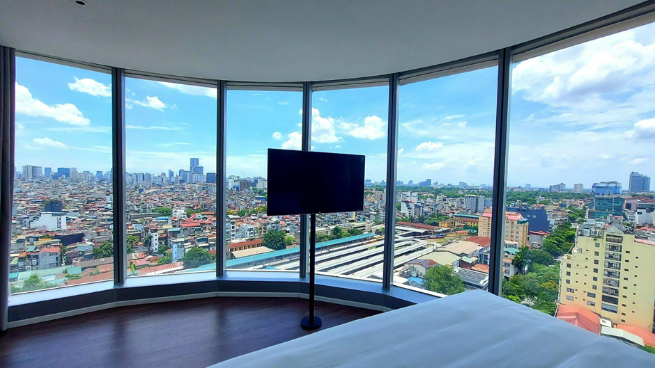 Ngoài view trời mây cực phẩm, SOJO Hotels còn khiến khách lưu trú mê mẩn bởi những tiện nghi hiện đại. Tất cả phòng ngủ tại đây đều được trang bị công nghệ tiên tiến như điều khiển rèm cửa, đèn, và tivi qua app. Chỉ cần một cú chạm là bạn có thể điều chỉnh mọi thứ theo ý thích, mang lại cảm giác thư giãn và tiện lợi. Những chi tiết nhỏ nhưng tinh tế như cổng sạc USB ngay đầu giường hay dây cáp tivi được sắp xếp gọn gàng cũng khiến cho trải nghiệm tại SOJO Hotels thêm phần hoàn hảo.