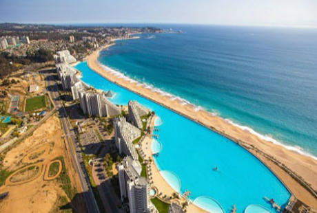 Hồ bơi San Alfonso Del Mar ở Chile với diện tích khoảng 80.000 m2 đã được sách kỷ lục Guinness công nhận là hồ bơi lớn nhất thế giới. Thời gian xây dựng hồ bơi kéo dài tới 5 năm và tiêu tốn chi phí khoảng 2 tỷ USD. Hồ được chia thành các khu với nhiều loại hình giải trí độc đáo như hồ phun nước, bến đua thuyền buồm, bãi biển nhân tạo...