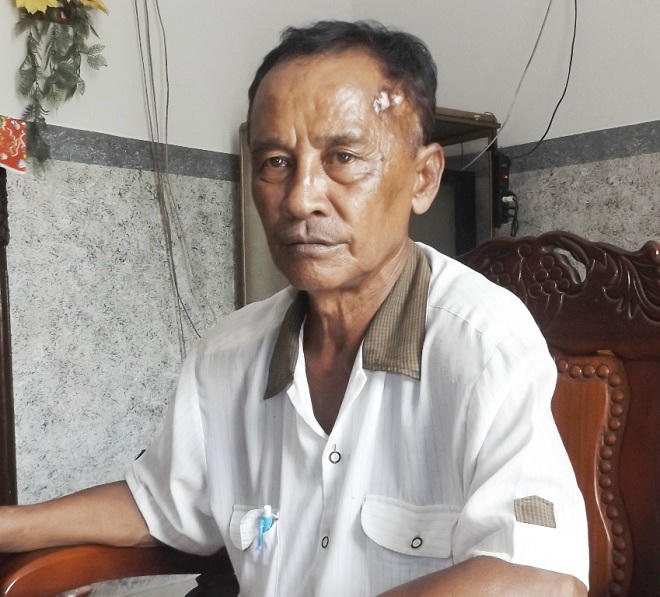 Ông Kim Sa Khia (67 tuổi, ngụ ấp Đầu Giồng, xã Phương Thạnh, cha chị Hương) xót con nên bất chấp nguy hiểm xông vào can ngăn, giải cứu con gái thì bị Dũng vung dao trúng vào tay ông Khia gây trầy xước.