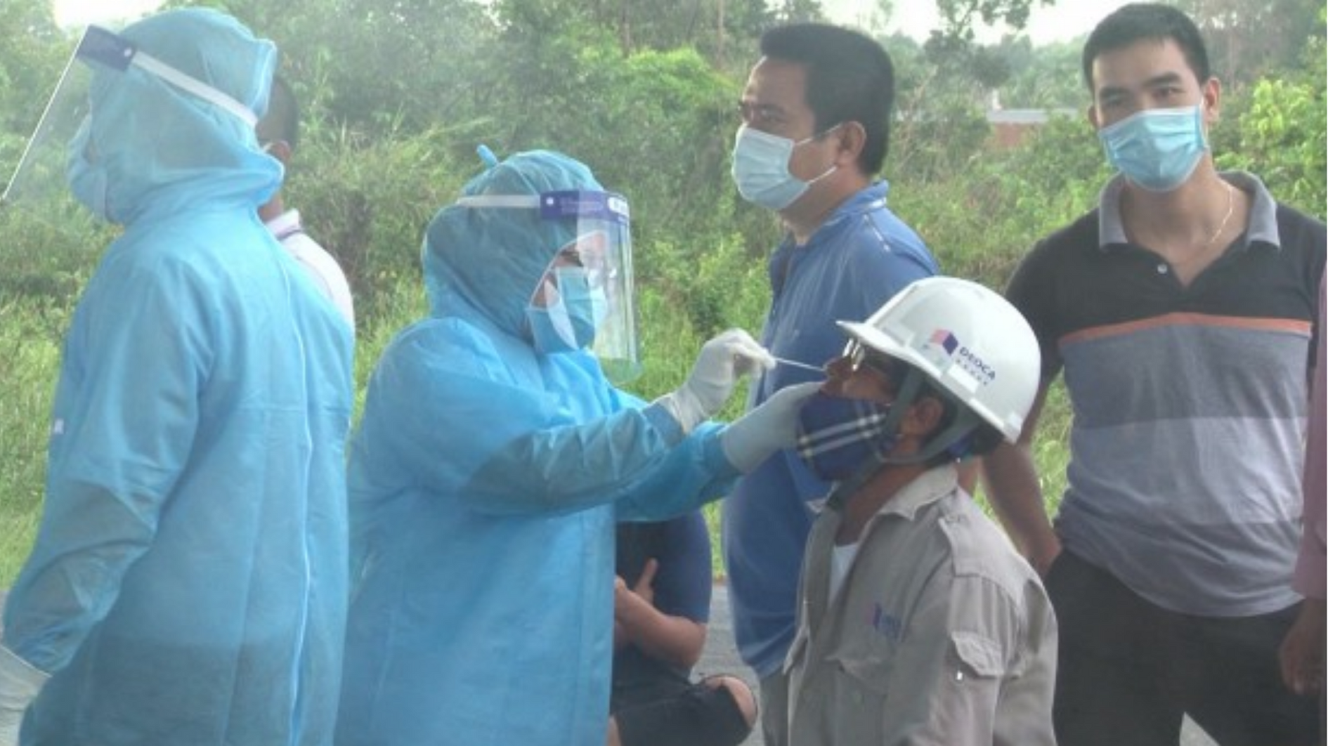 Tổ COVID cộng đồng thực hiện công tác truy vết, lấy mẫu xét nghiệm các ca nghi mắc COVID-19 tại địa phương. Ảnh: Việt Bình |