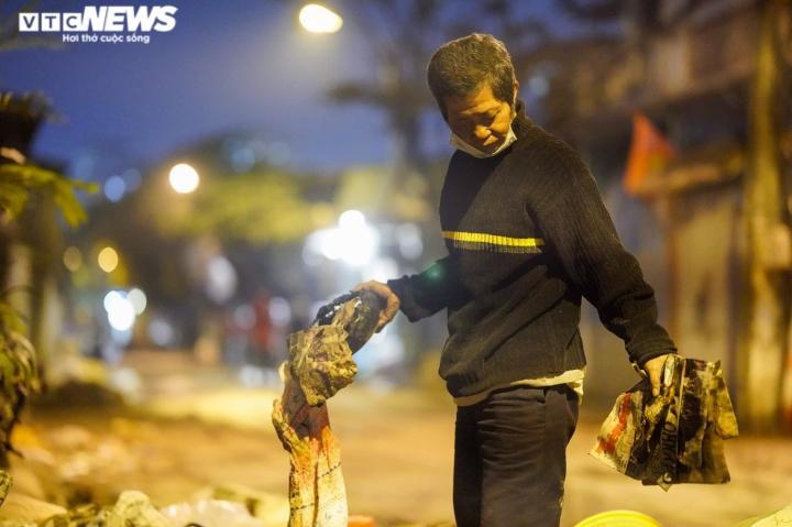 Ông Cường bới đống tro tàn nhặt lại những đồ còn dùng được. (Ảnh: Đắc Huy).