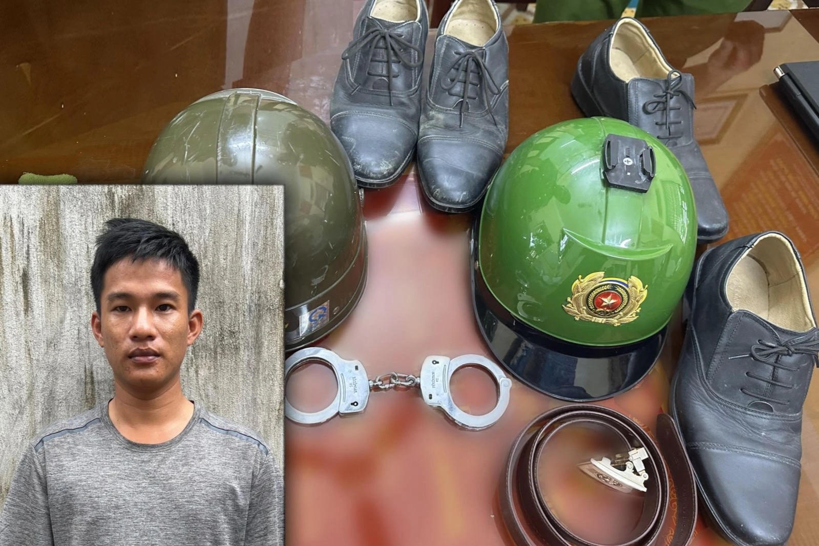 Căn cứ tài liệu chứng cứ thu thập được, Công an huyện Thường Xuân đã đã phối hợp với Công an xã Hòa An, Công an huyện Phú Hòa, tỉnh Phú Yên tiến hành khám xét khẩn cấp nơi ở của Lê Thanh Hưng. Qua khám xét, lực lượng Công an đã thu giữ: 1 còng số 8, 2 mũ bảo hiểm đeo phù hiệu Công an cùng thắt lưng, giầy, tất Công an…