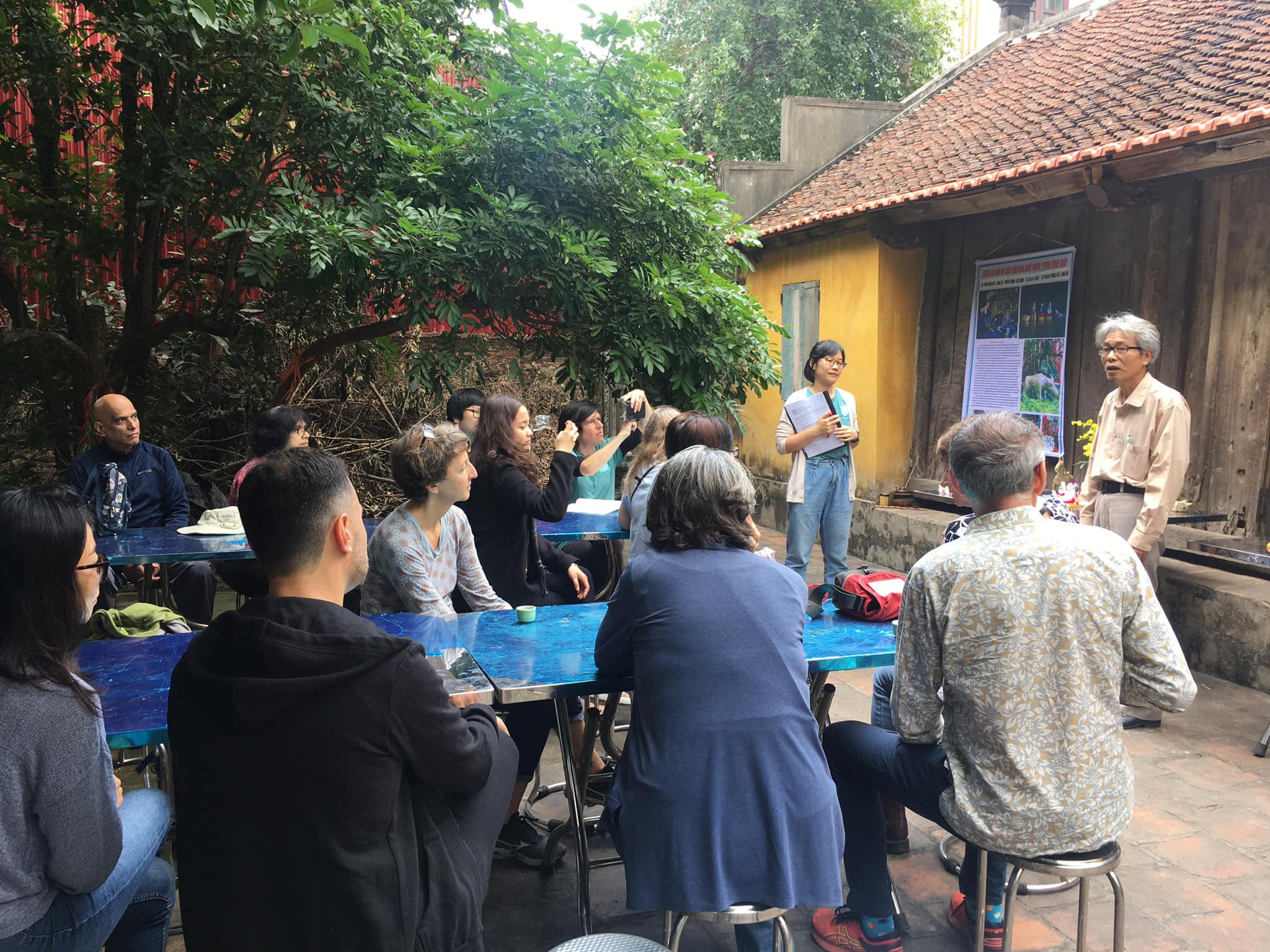 Bài thơ “Người giữ hồn đồ chơi dân gian” được bà Nguyễn Thị Điểu, vợ ông Giáp ngâm ngay trong sân nhà khiến những du khách tham quan không ngớt tay tán thưởng. Bà Điểu là người đã đồng hành cùng chồng trên con đường gìn giữ và lưu truyền nghề làm phỗng đất. Từ đam mê của chồng, phỗng đất cũng đã trở thành một phần không thể thiếu của cuộc đời bà.