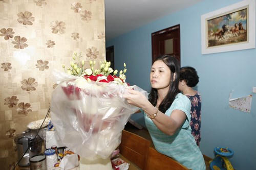 "Gia đình mình là gia đình quân nhân nên mọi thứ đơn giản. Mình cũng bận nhiều nên chiều nay mới có thời gian để chuẩn bị đón anh Vinh. Dẫu vậy, hôm nay là ngày đặc biệt nên mình mua rất nhiều hoa để trang trí trong nhà và tặng anh Vinh", chị Giang cho biết.