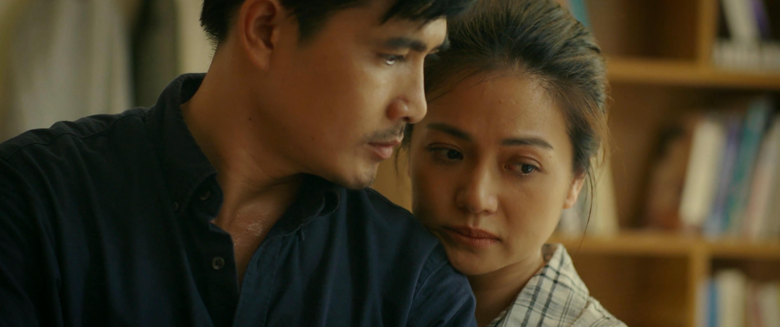 Vợ chồng Công - Phương trong phim “Gia đình mình vui bất thình lình”. Ảnh: NSX |
