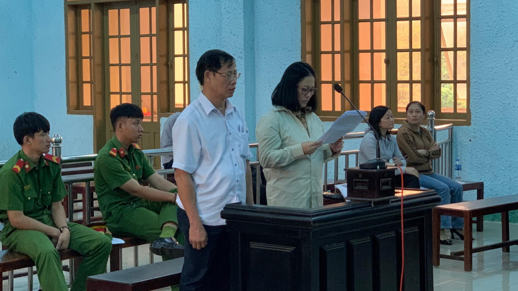 | Hai bị cáo tại phiên toà |