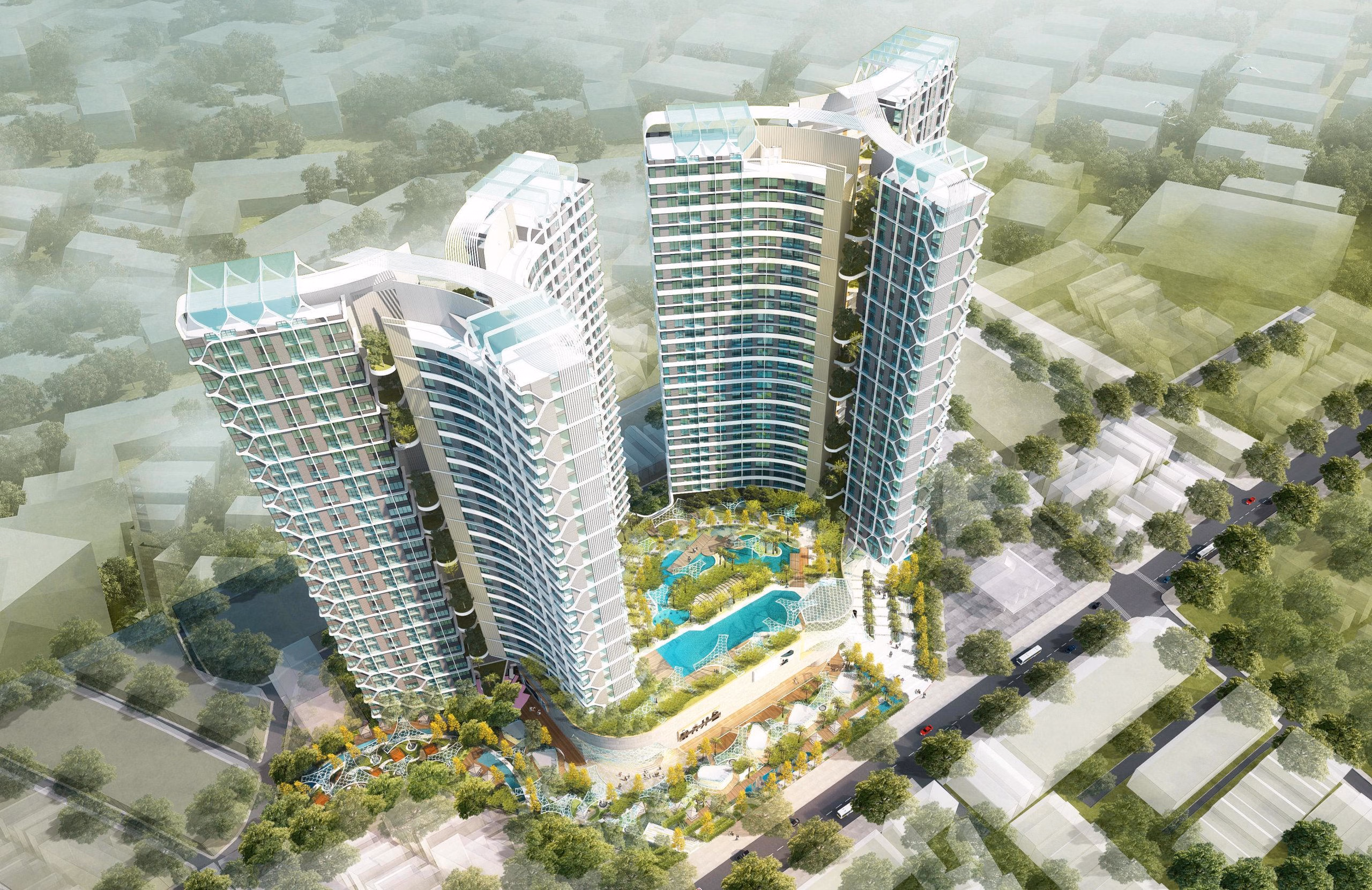 Khối tháp phía trên là khu căn hộ ở với khoảng 210 căn hộ, đa dạng diện tích, hướng đến mô hình chung cư hỗn hợp kết hợp thương mại – dịch vụ theo xu hướng phát triển đô thị tích hợp tiện ích.