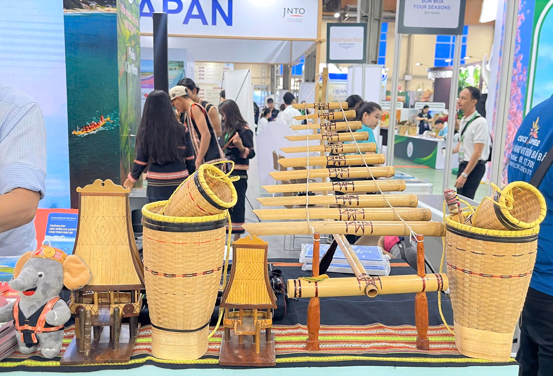 Có thể nói, góp mặt tại hội chợ lần này, tỉnh Gia Lai không chỉ mang đến những thông tin dịch vụ đơn thuần mà còn tái hiện một không gian văn hóa đặc trưng "Đại ngàn chạm biển xanh" ngay giữa lòng Thủ đô.